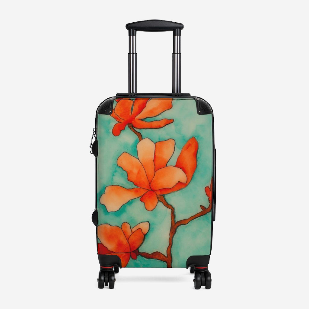 Make a bold statement with this wheeled carry on imprinted with Helen K. Tindel’s Baraka Blooms.