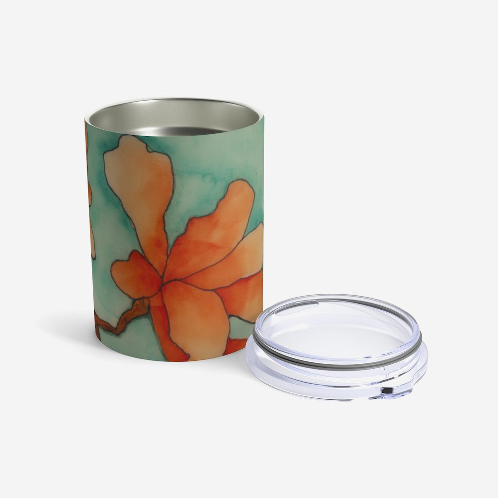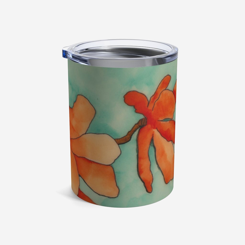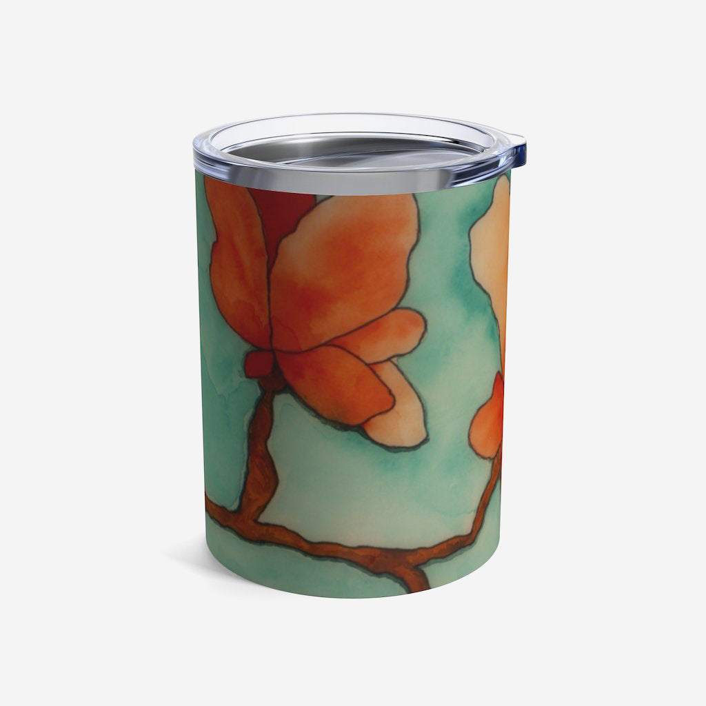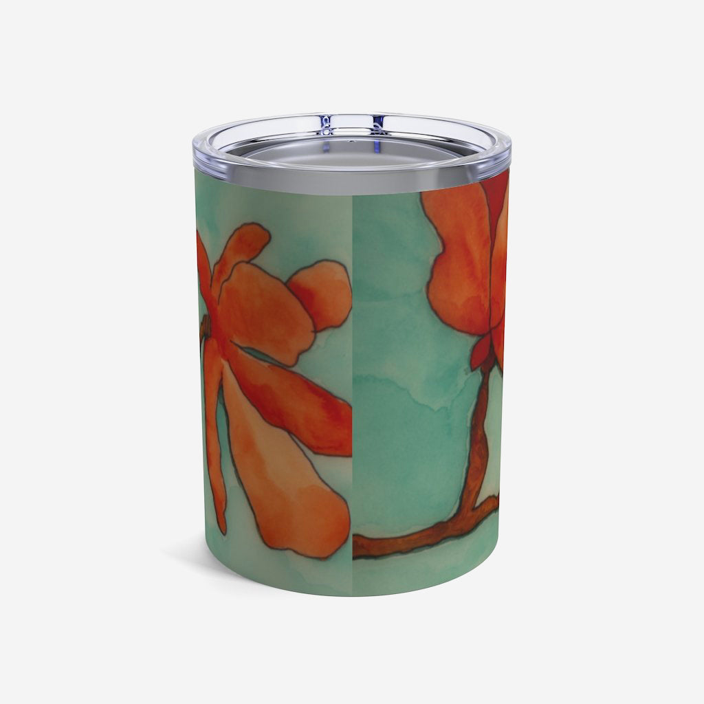 This 10oz tumbler is imprinted with Helen K. Tindel's Thunder Bloom. A stainless travel-size tumbler, it's vacuum-insulated and built to last. It's perfect to express your style.