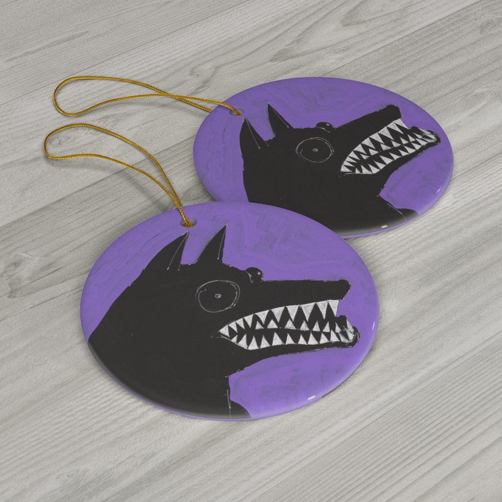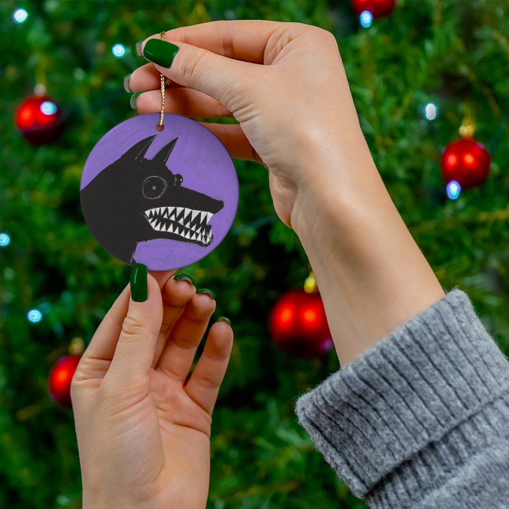 This custom-made ceramic ornament can be the perfect heirloom to use year after year, printed with Larry D. Blissett’s Black Dog.