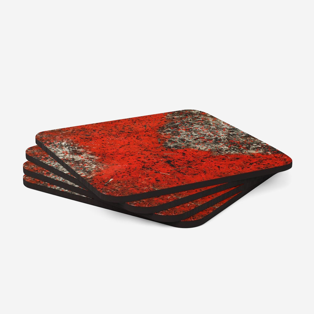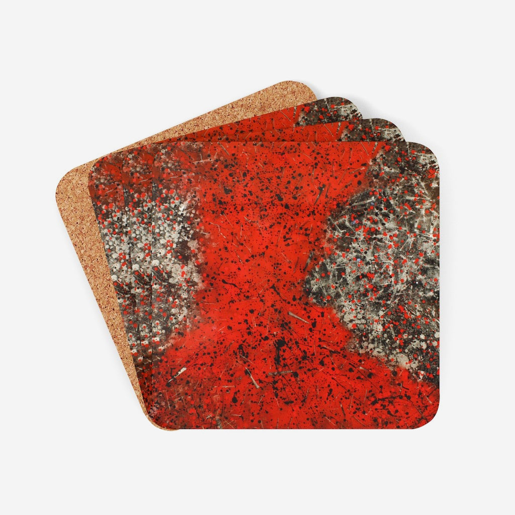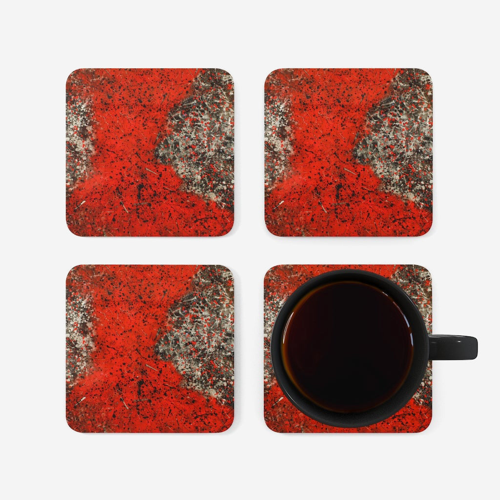 Set of four coasters with a high-gloss top and feature a cork back to prevent sliding.