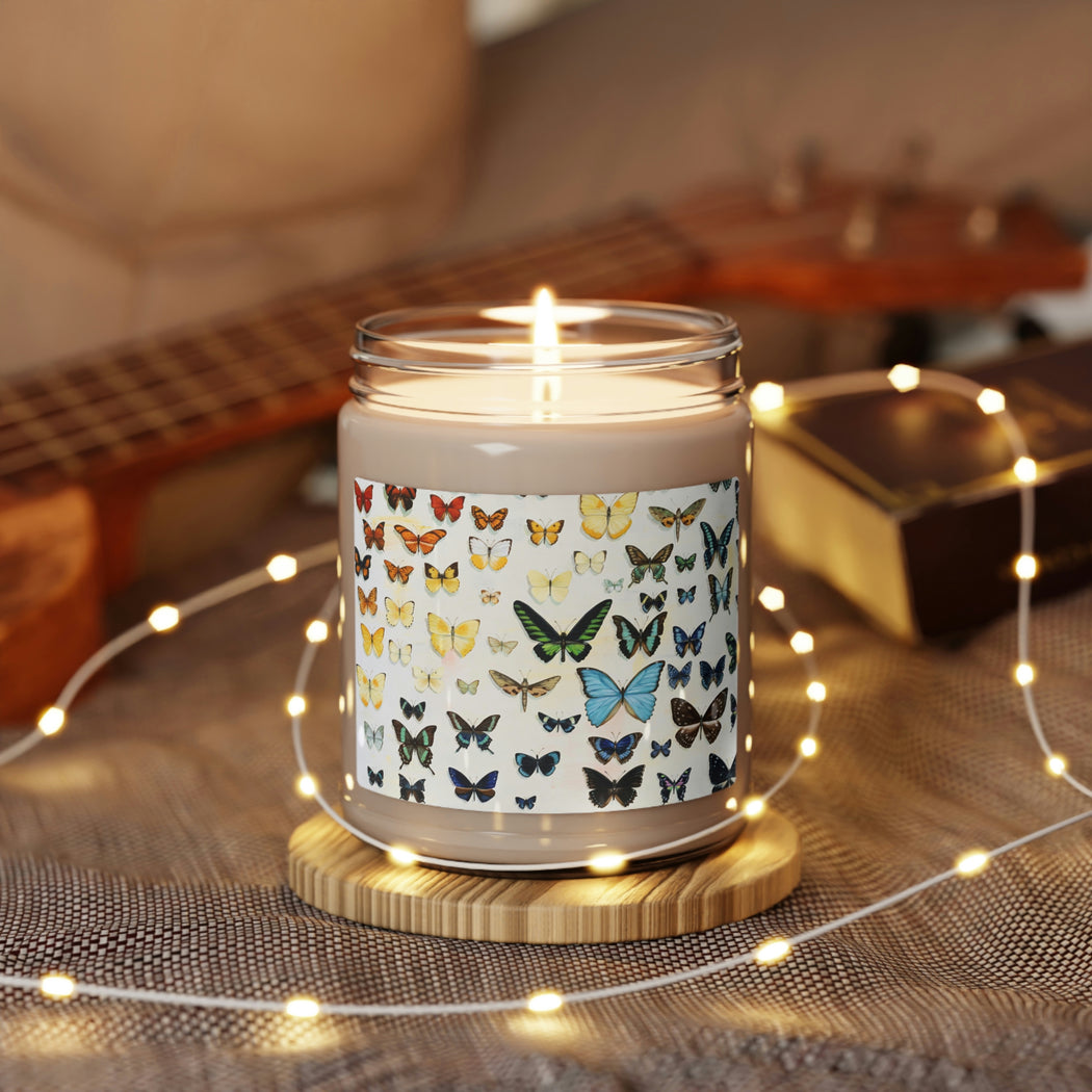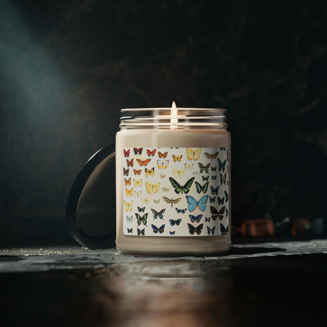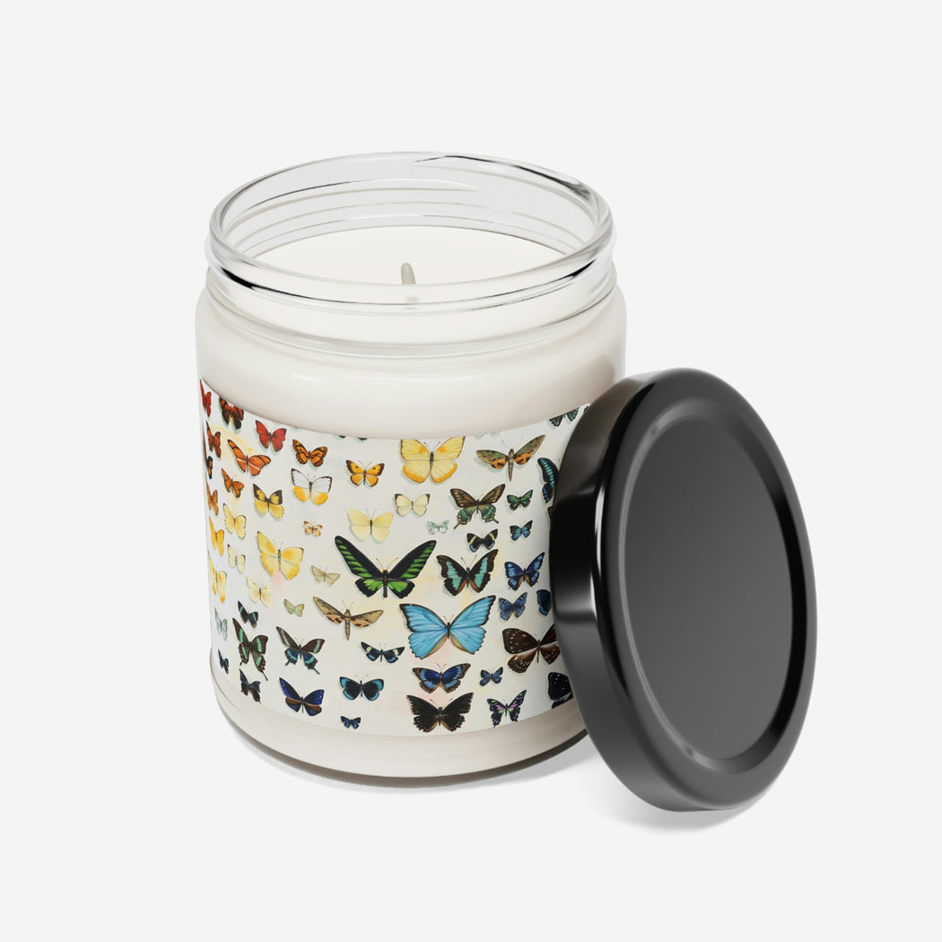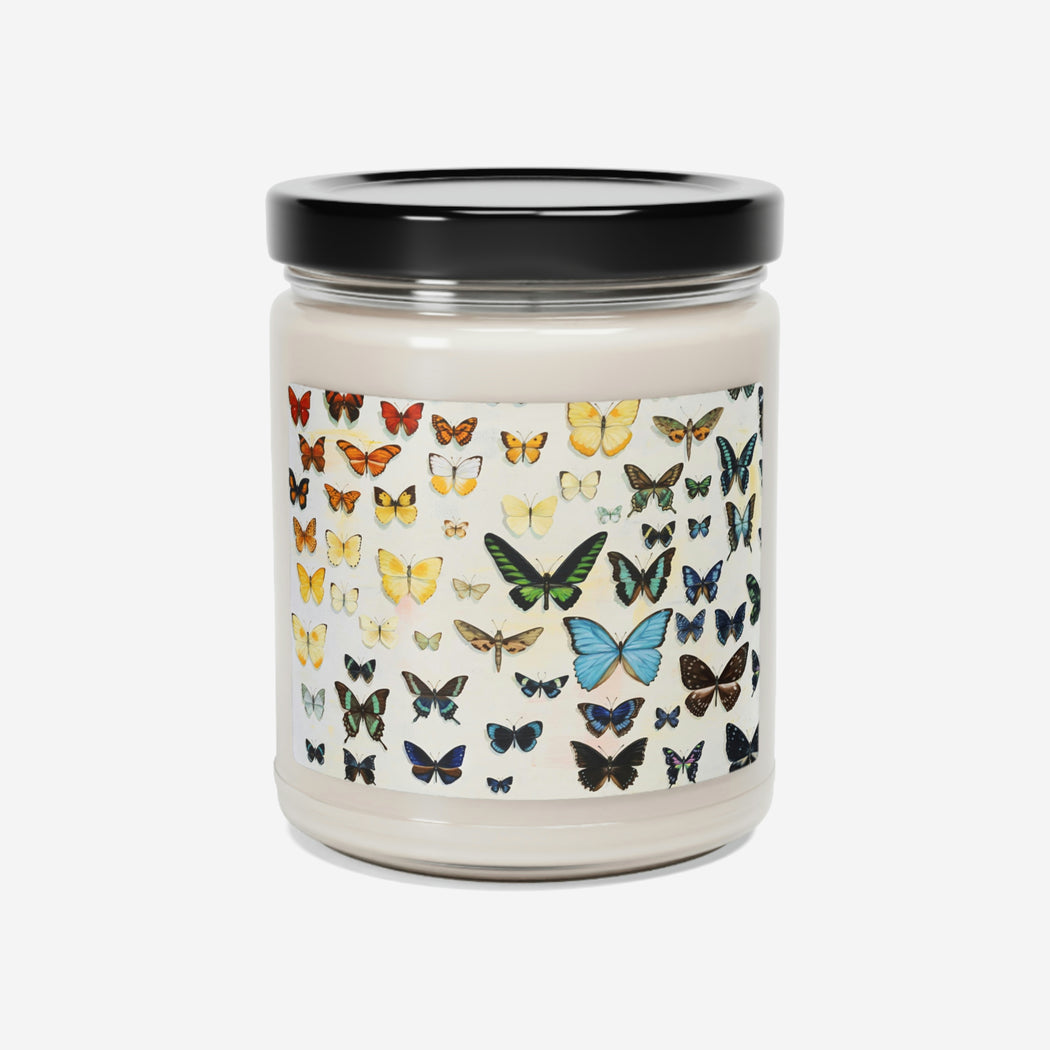 Packed with immersive aromas, these scented candles are made with 100% natural soy wax blend. Printed with Andrea Peterson's Butterfly Rainbow.