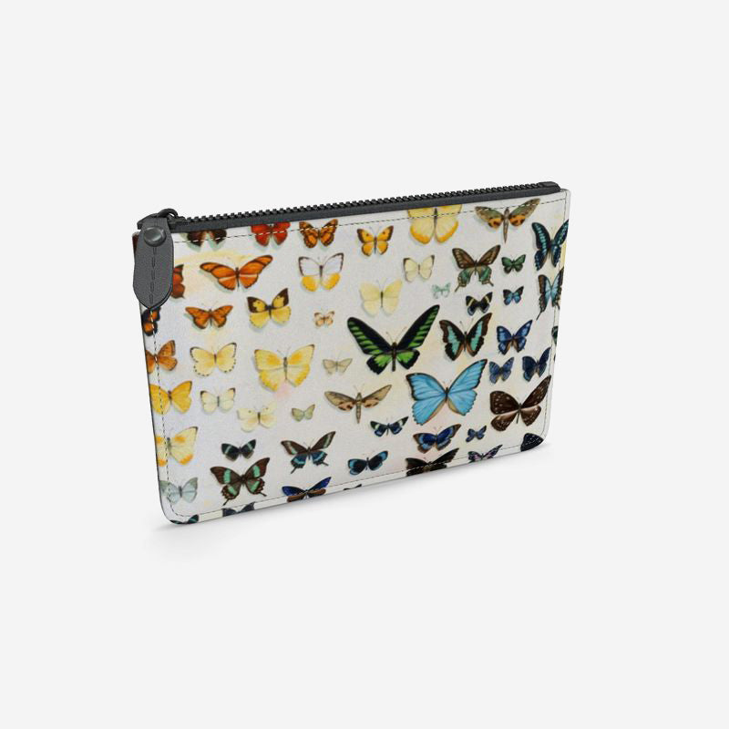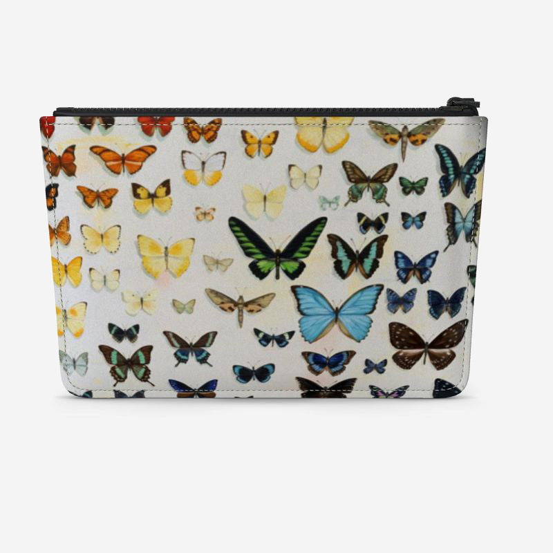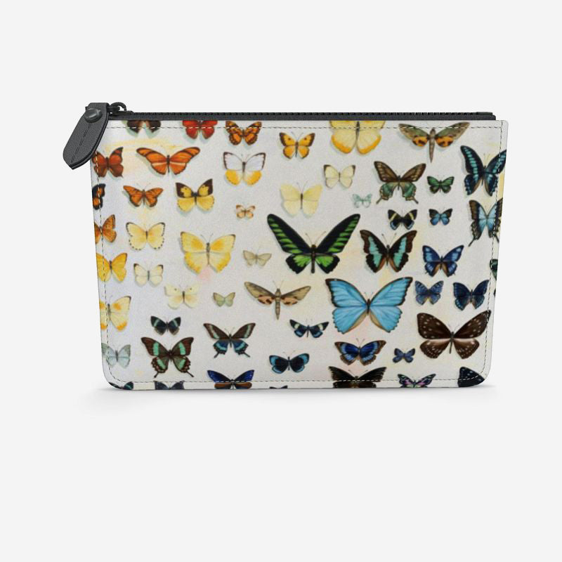 This handy, designer leather clutch is imprinted with with Andrea Peterson's Butterfly Rainbow.