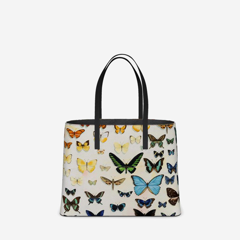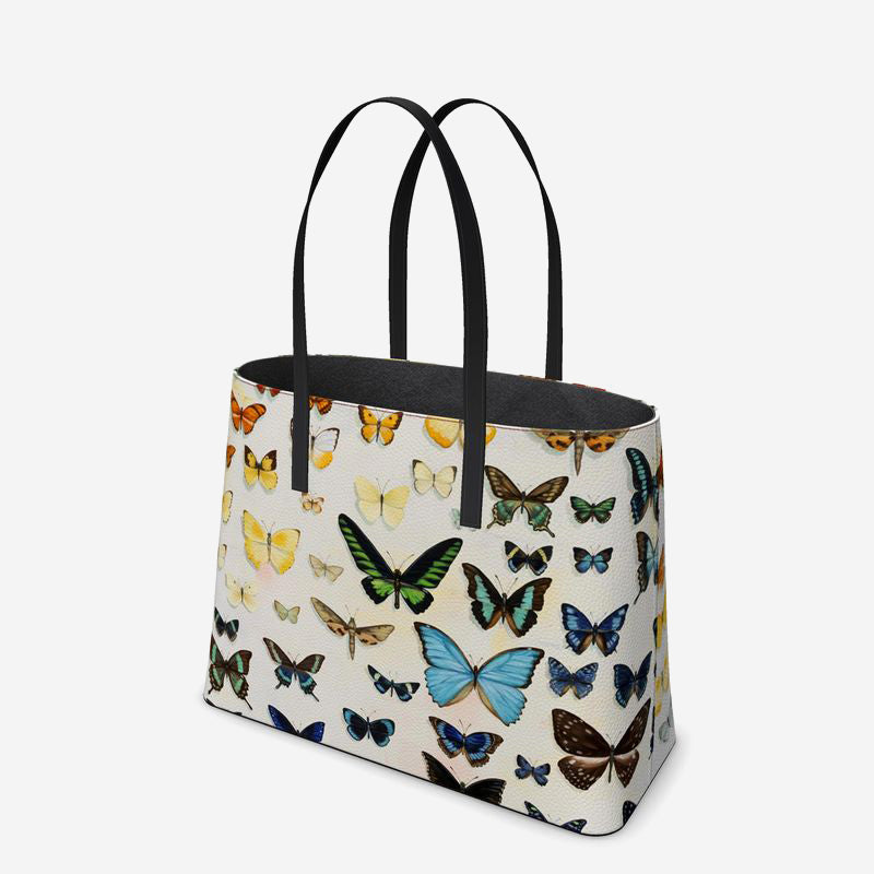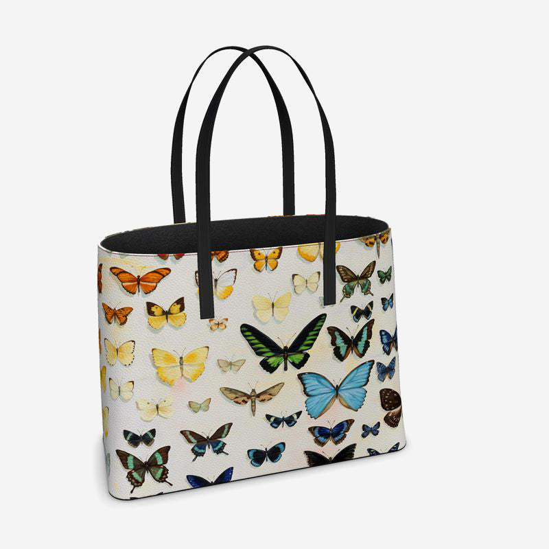 This stunning, custom l leather tote is imprinted with Andrea Peterson's Butterfly Rainbow.