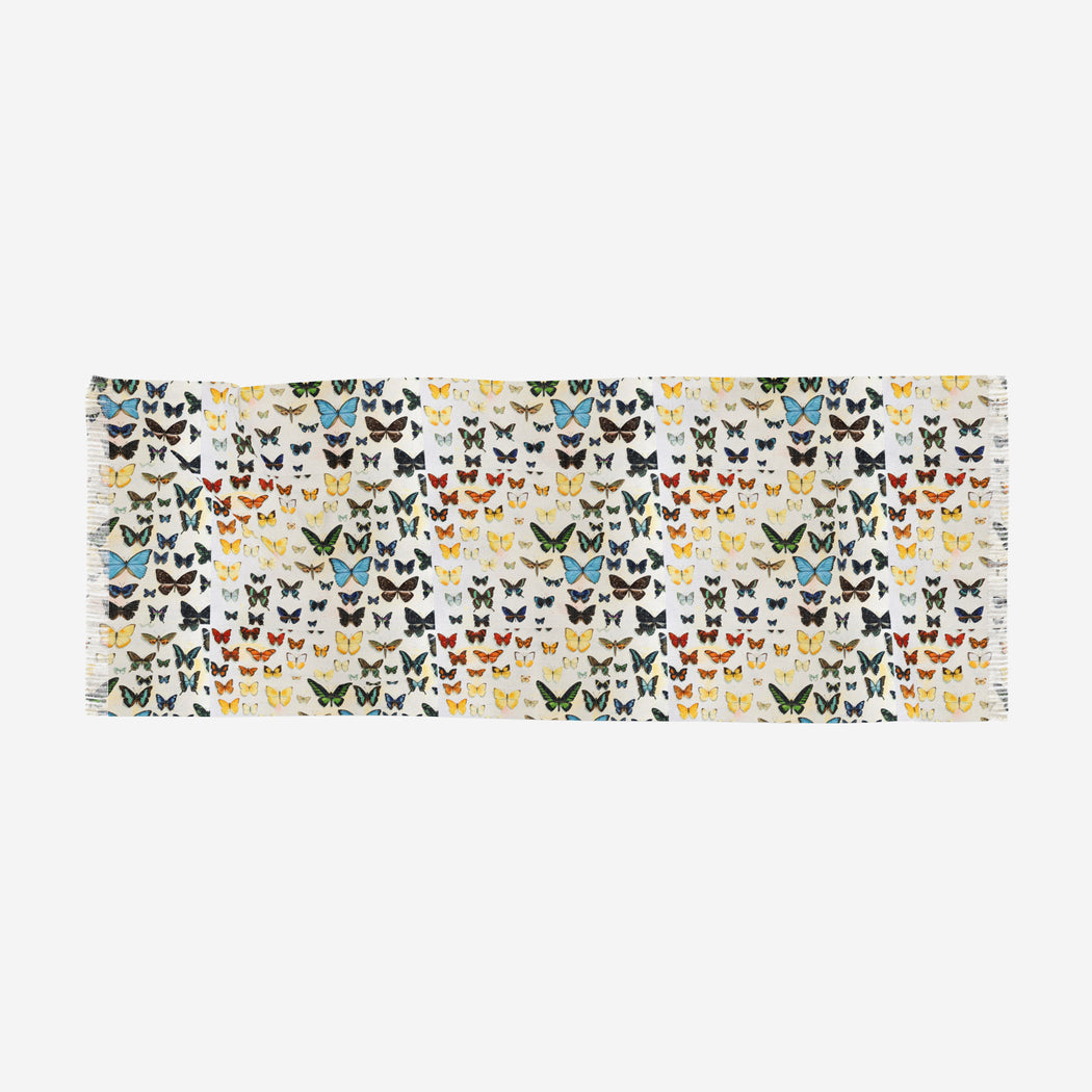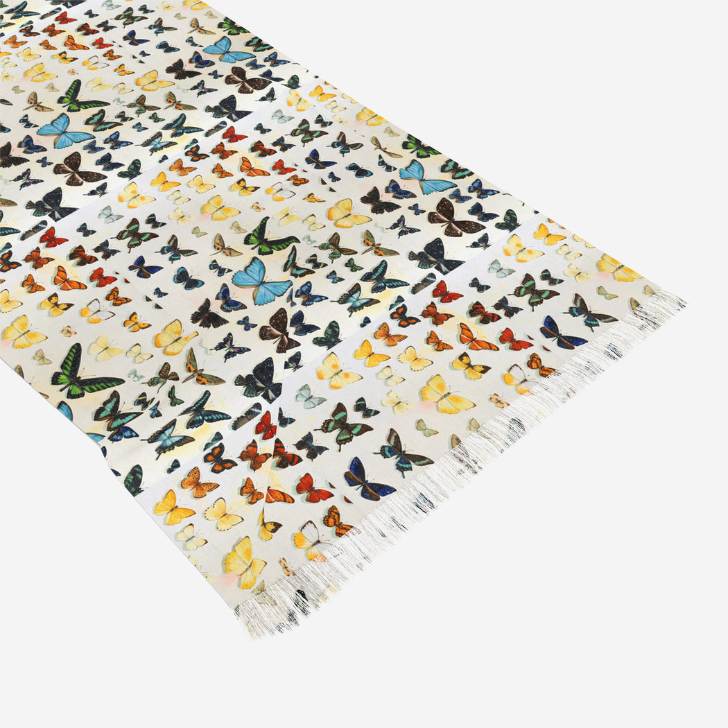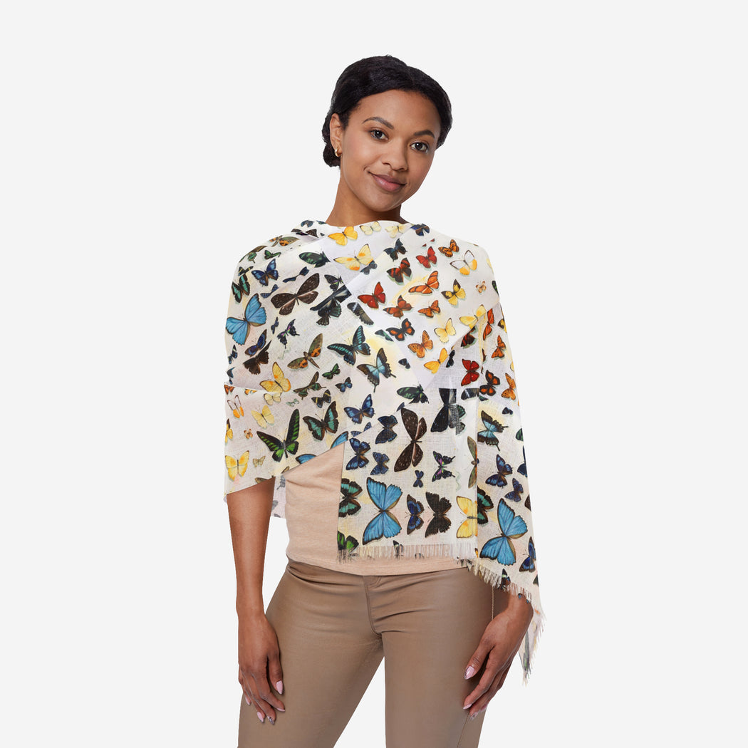 Create the perfect accessory that ties together any outfit with these long, lightweight scarves. Each scarf is transparent and printed with Andra Peterson's Butterfly Rainbow.