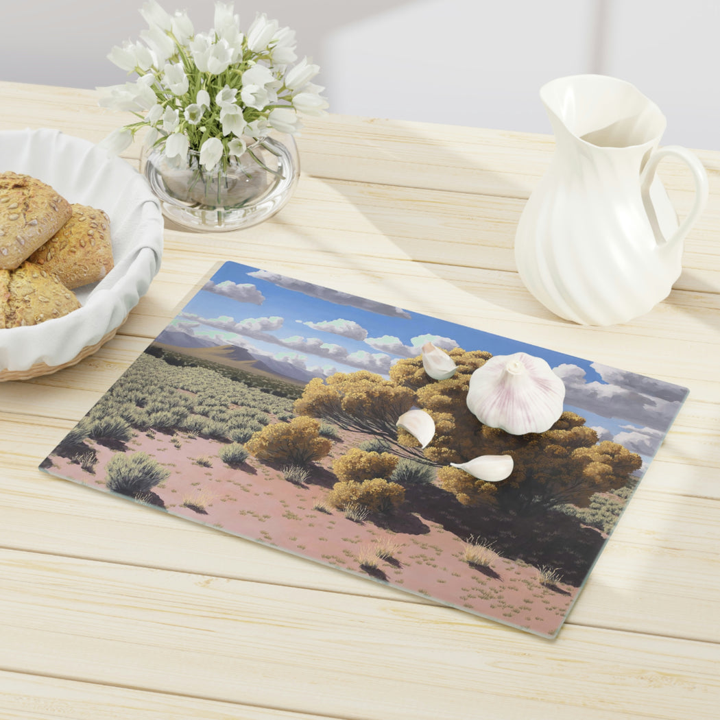 This glass serving tray is perfect for serving your fine gourmet cheeses and crackers.  A wonderfully unique addition to any chef’s arsenal with Doug West’s Chamisa Temple.