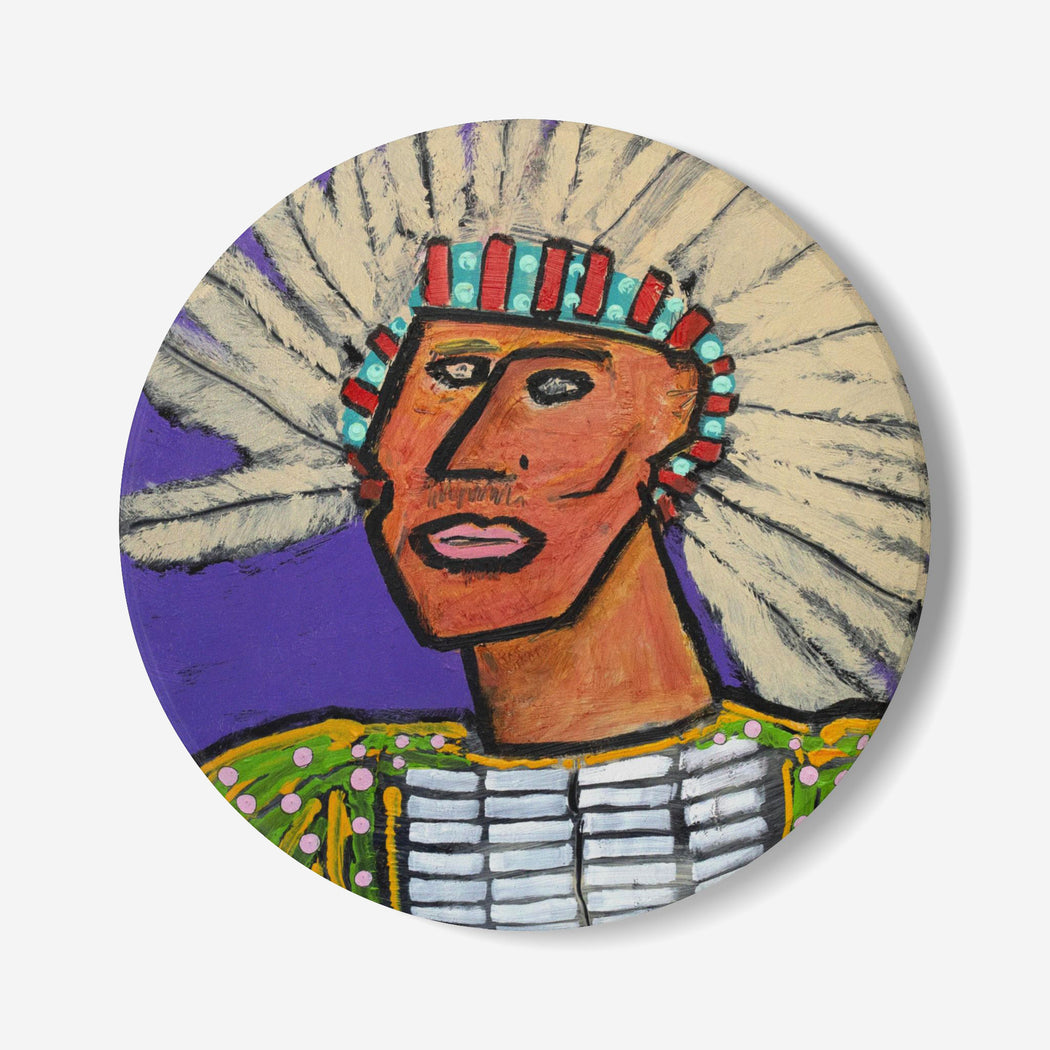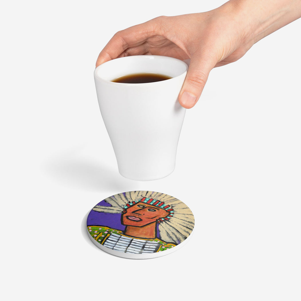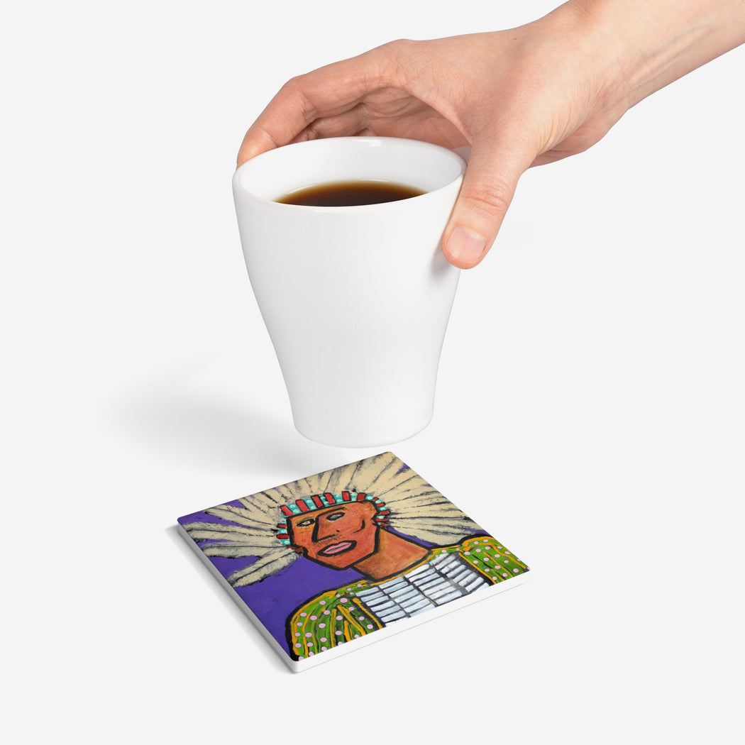 Add a splash of color and charm to your space with Larry D. Blissett's Chief Wild Goose ceramic coasters. Use them while enjoying cozy coffee mornings or hosting parties with friends and family—keeping surfaces safe and stylish.