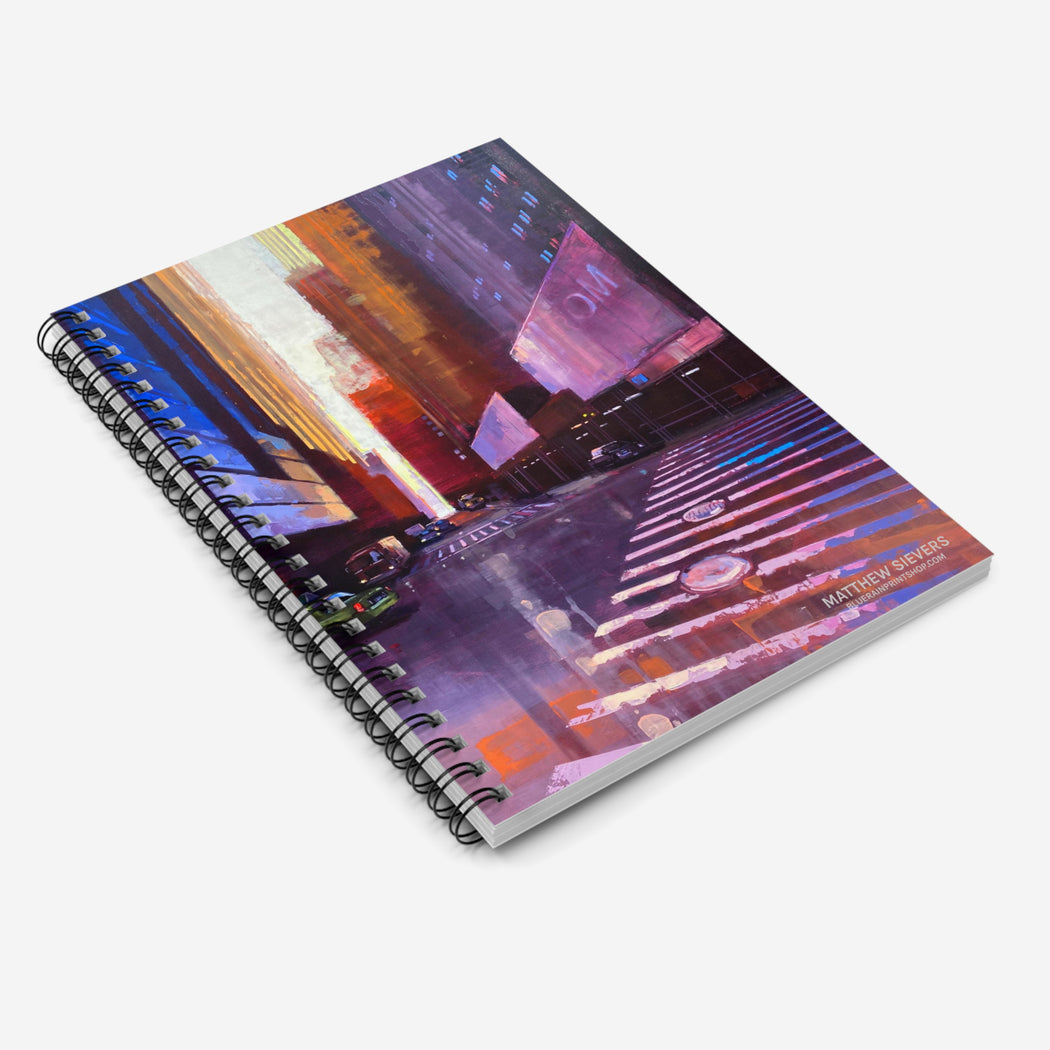 This spiral notebook is imprinted with Matthew Sievers At The Crosswalk.  Shopping lists, school notes or poems — a perfect companion for everyday life.