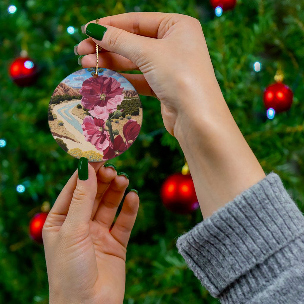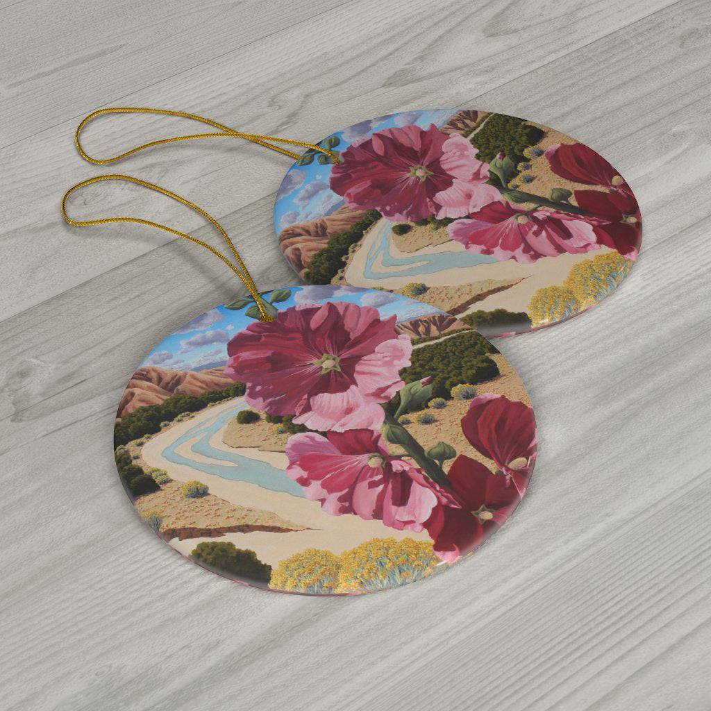 This custom-made ceramic ornament can be the perfect heirloom to use year after year, printed with Doug West’s Dreams of Chimayo.