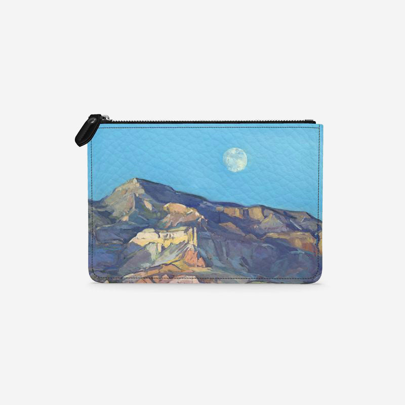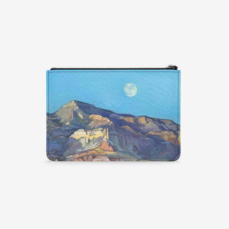 This handy, designer leather clutch is imprinted with with Kathryn Stedham's Ghost Ranch Small Moon.