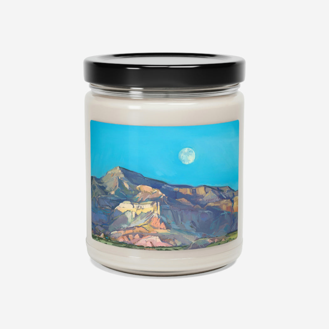 Packed with immersive aromas, these scented candles are made with 100% natural soy wax blend. Printed with Kathryn Stedham's Ghost Ranch Small Moon.