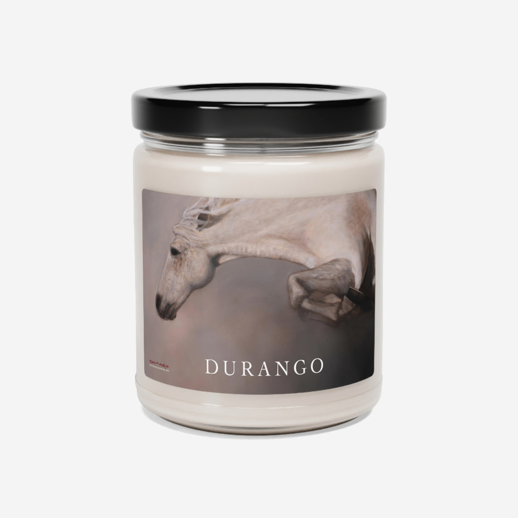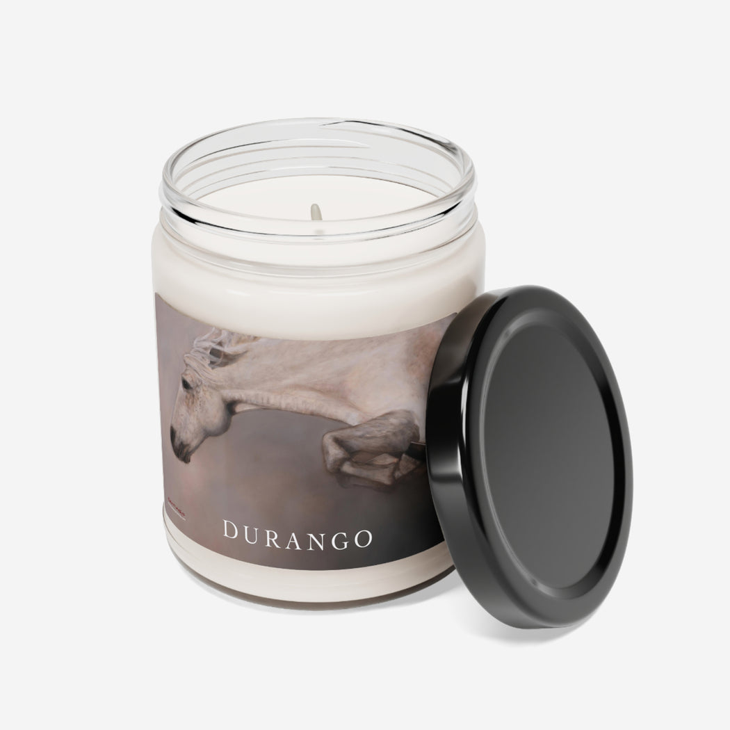 Packed with immersive aromas, these scented candles are made with 100% natural soy wax blend. Printed with Roseta Santiago's Journey Horse.