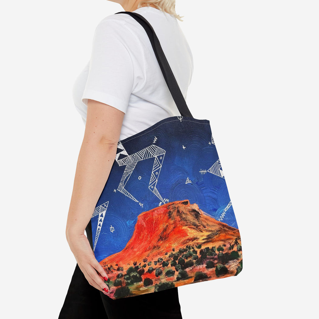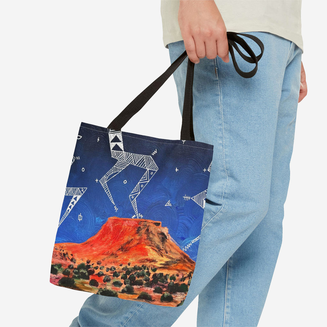 Make a difference by switching to an eco-friendly tote with Jesse Littlebird's Lightening People Dancing Over Cabezon.