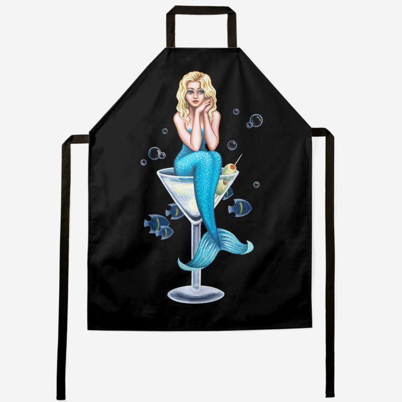 Aprons are handmade and printed with Andrea Peterson’s Mermaid Martini.