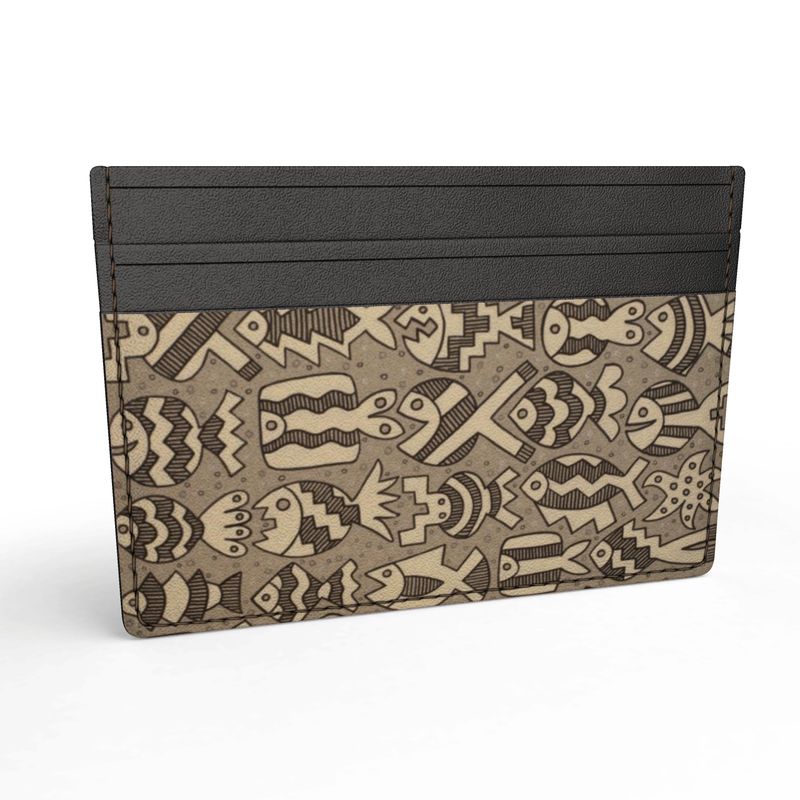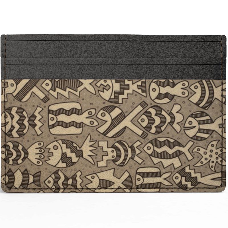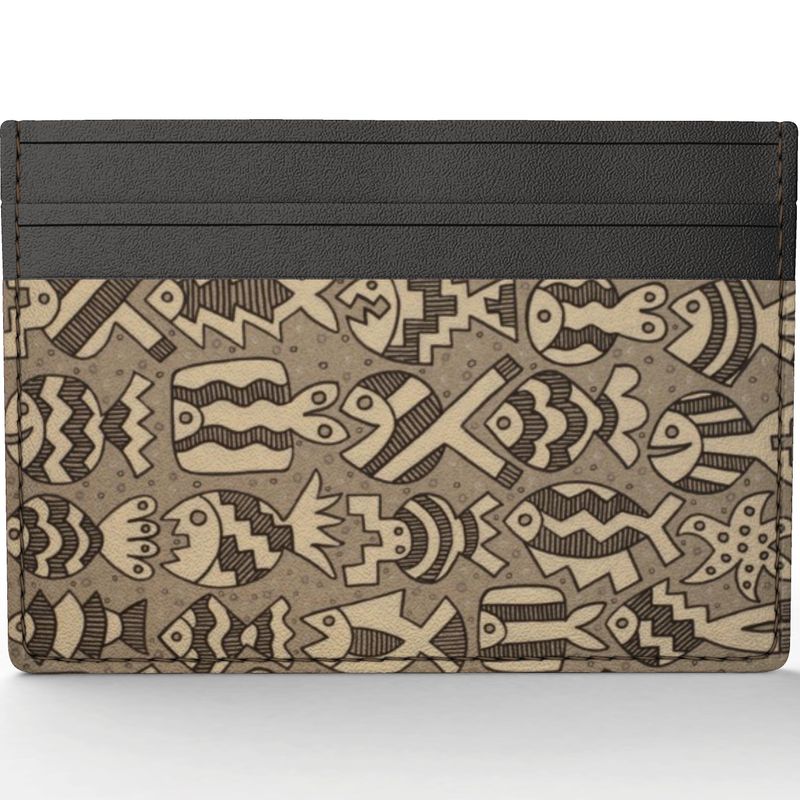 This custom leather card holder is imprinted with Jody Naranjo’s Monochromatic Fish.