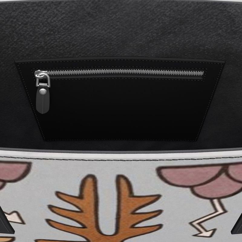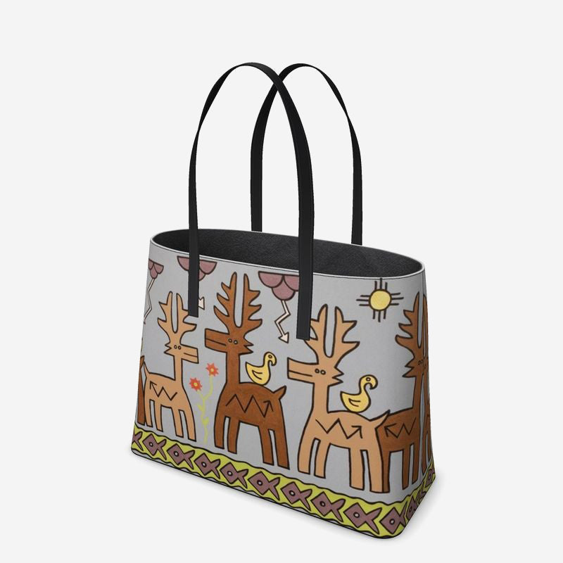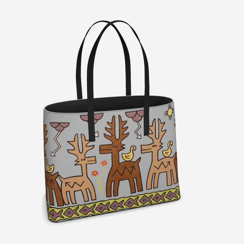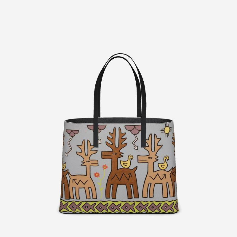 This stunning, custom leather tote is imprinted with Jody Naranjo’s Oh, My Deer!