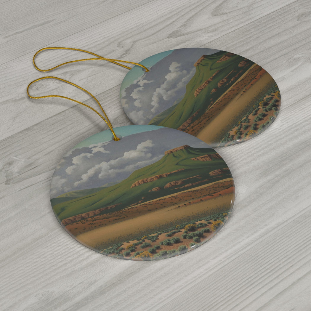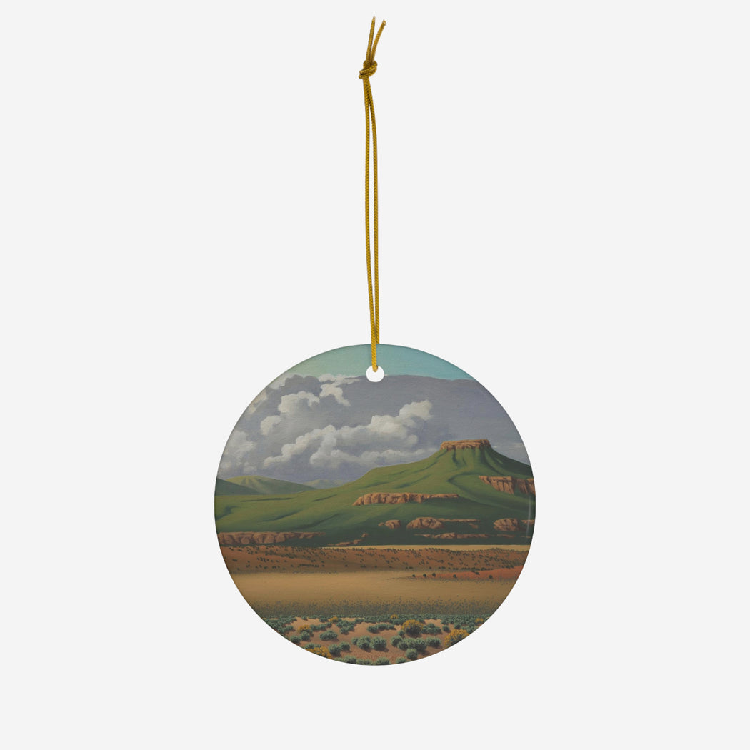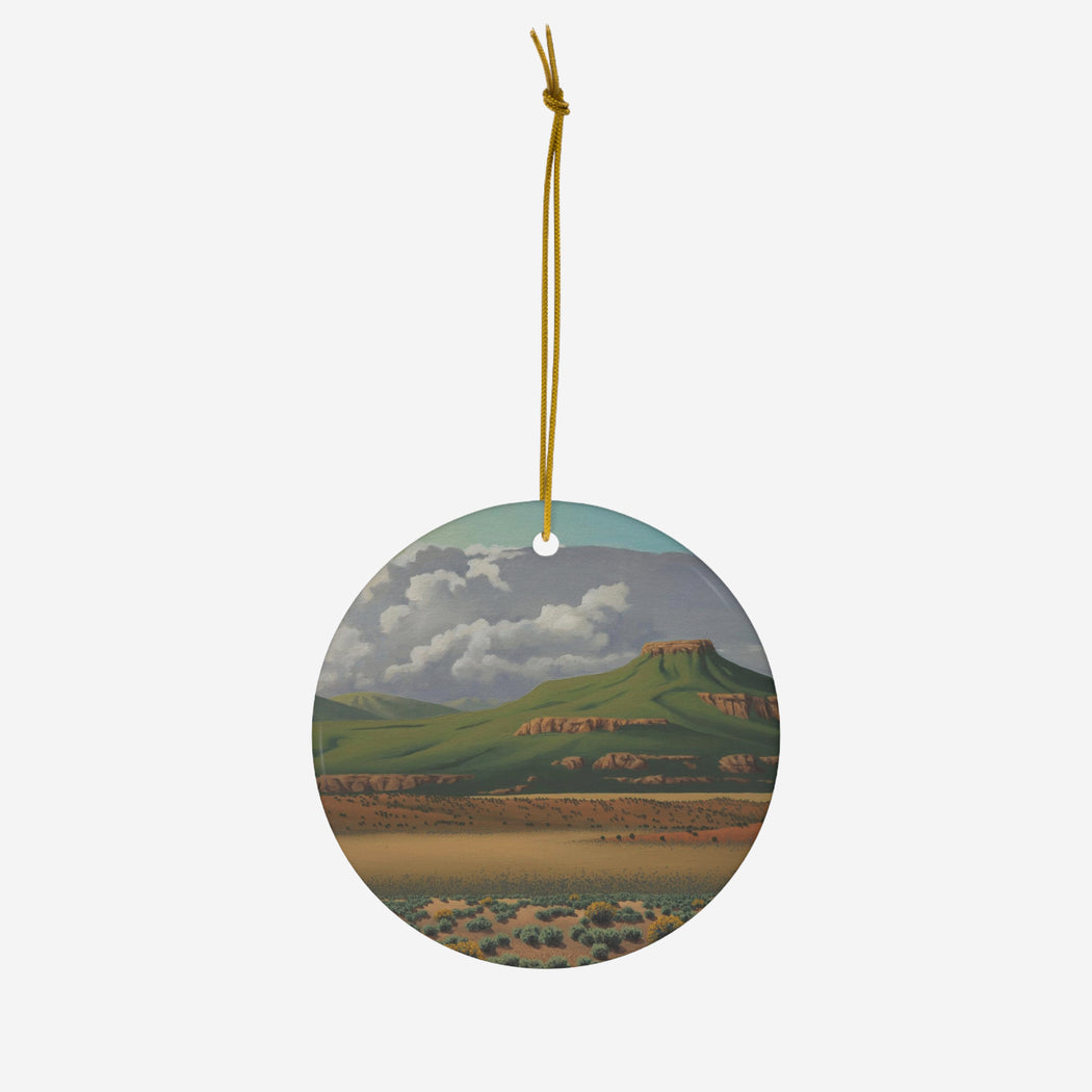 This custom-made ceramic ornament can be the perfect heirloom to use year after year, printed with Doug West’s Pedernal Morning.