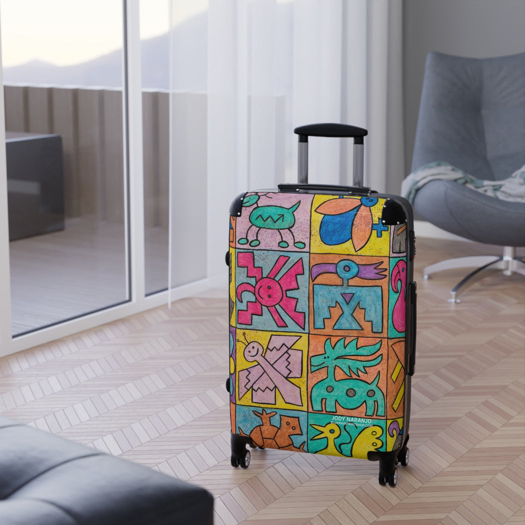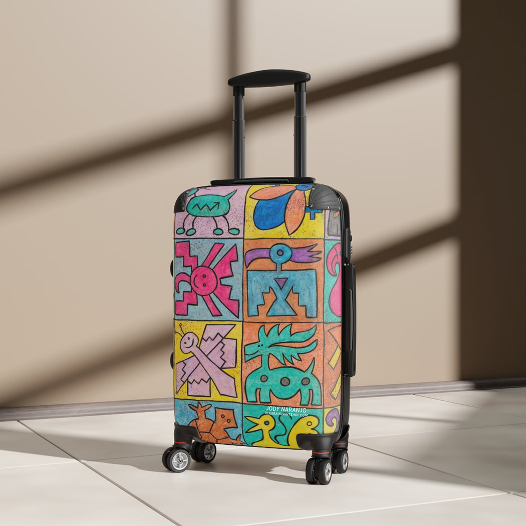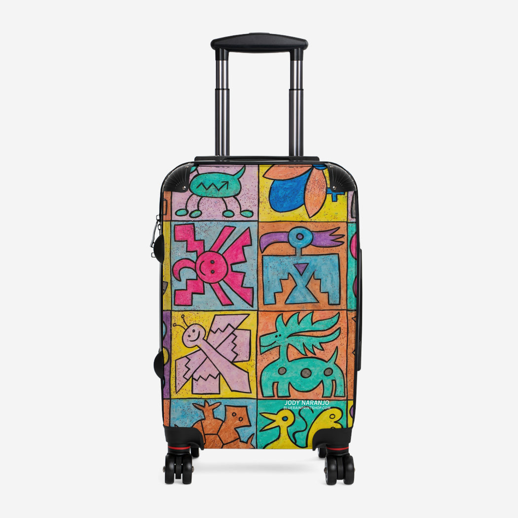 Make a bold statement with this wheeled carry on imprinted with Jody Naranjo's Play Time.