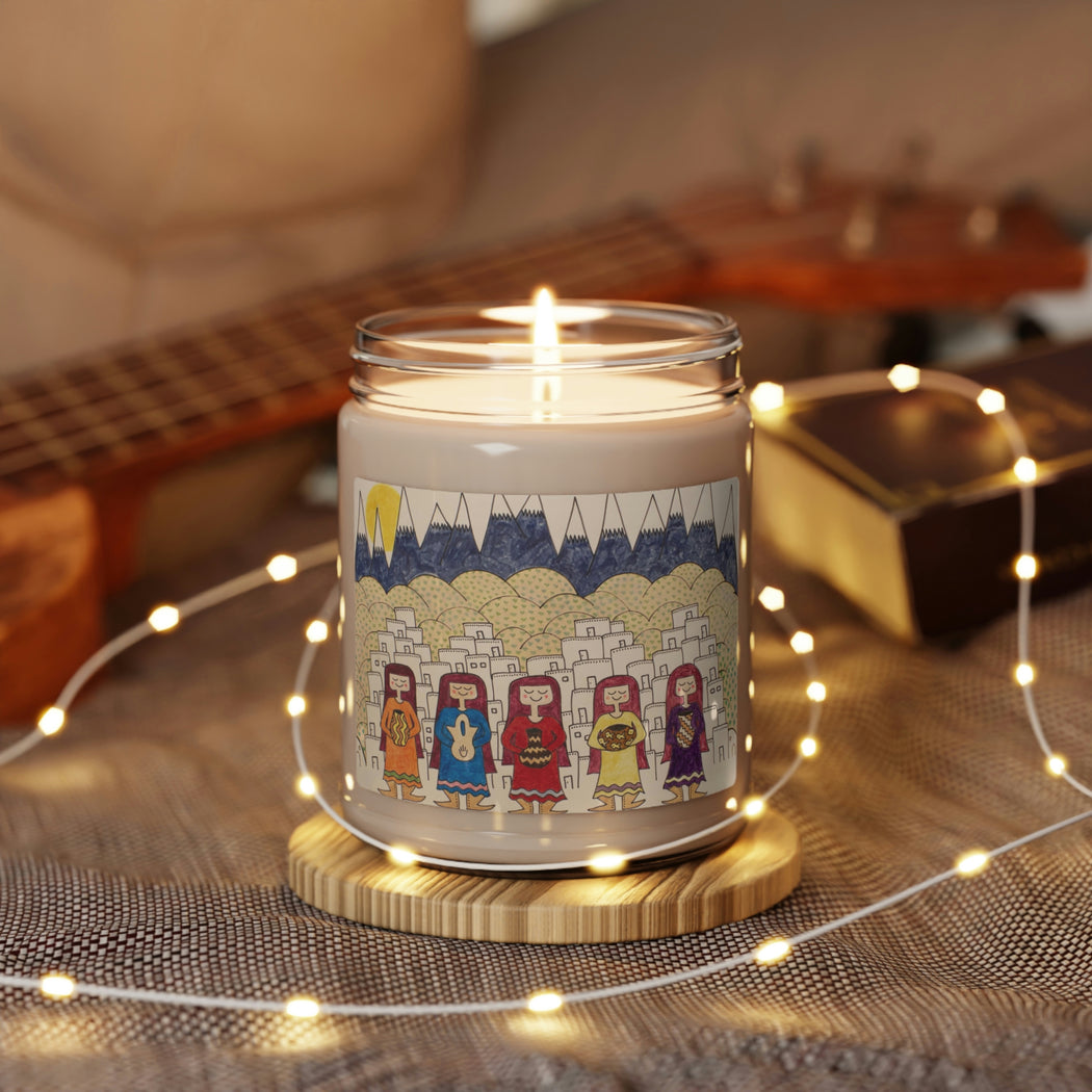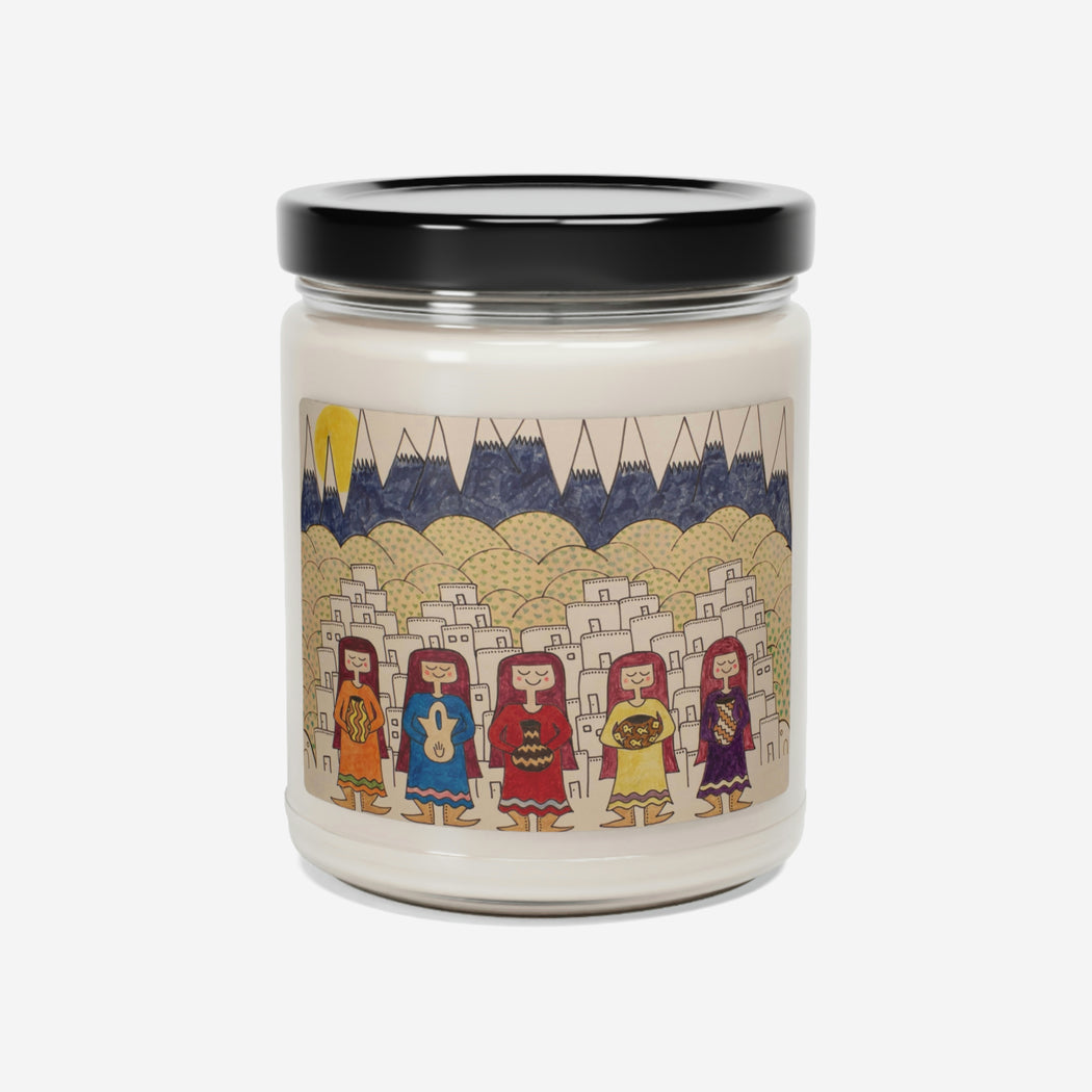 Packed with immersive aromas, these scented candles are made with 100% natural soy wax blend. Printed with Jody Naranjo's Pueblo Girls.