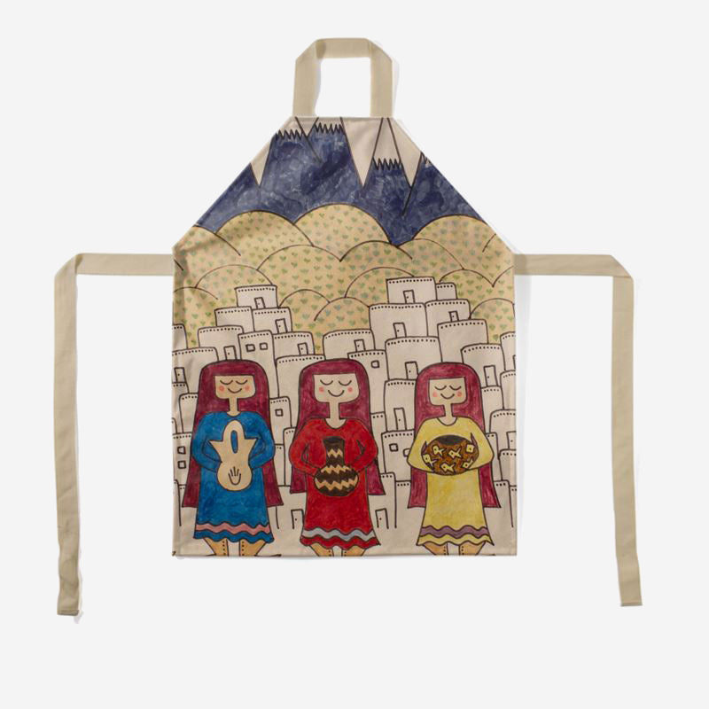 Aprons are handmade for kids and printed with Jody Naranjo's Pueblo Girls.
