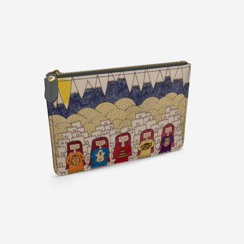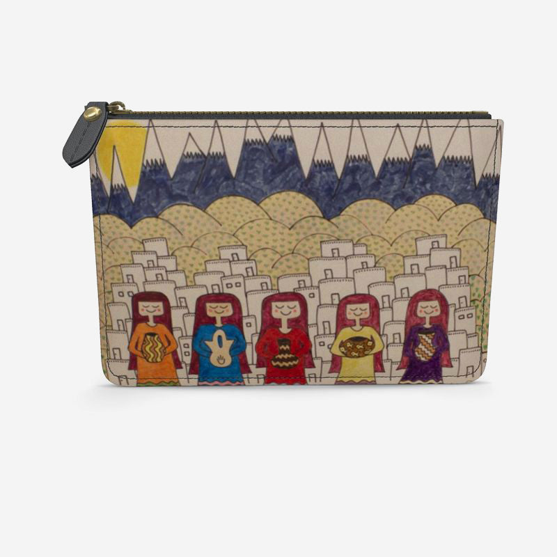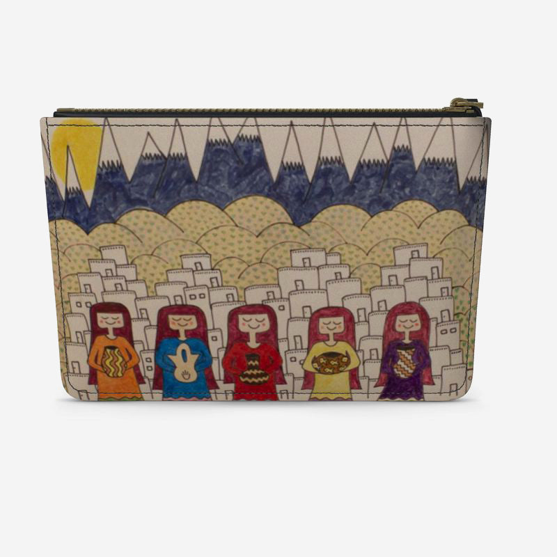This handy, designer leather clutch is imprinted with with Jody Naranjo’s Pueblo Girls.