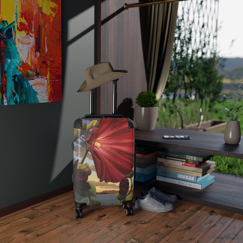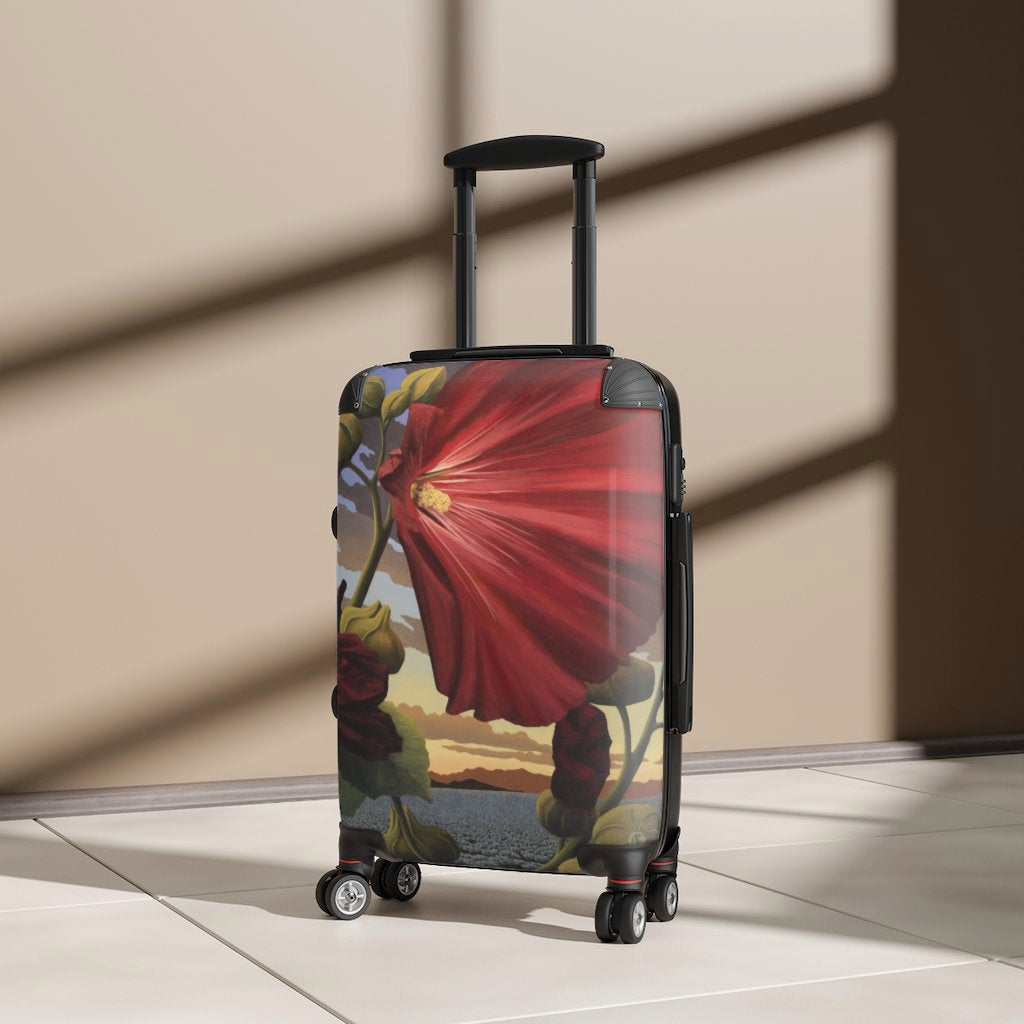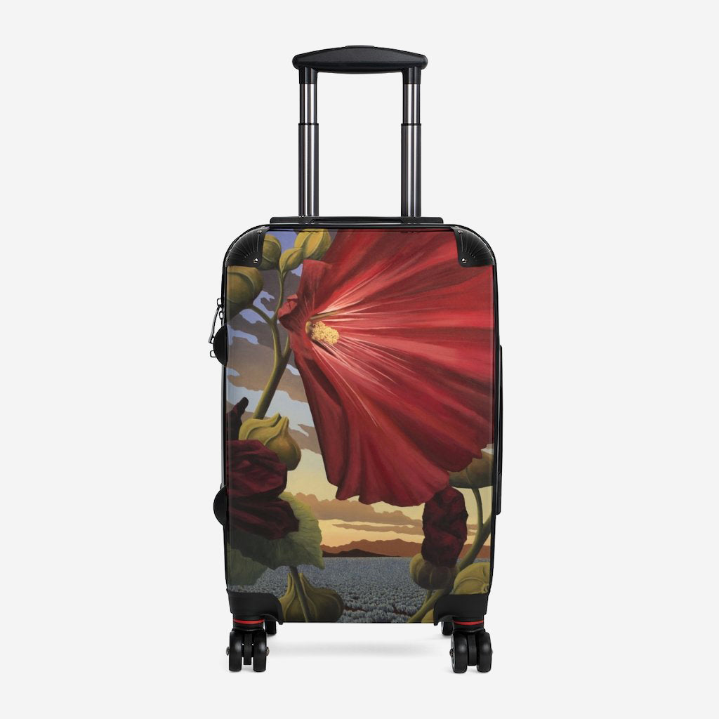 Make a bold statement with this wheeled carry on imprinted with Doug West’s Sage Ocean Bloom.