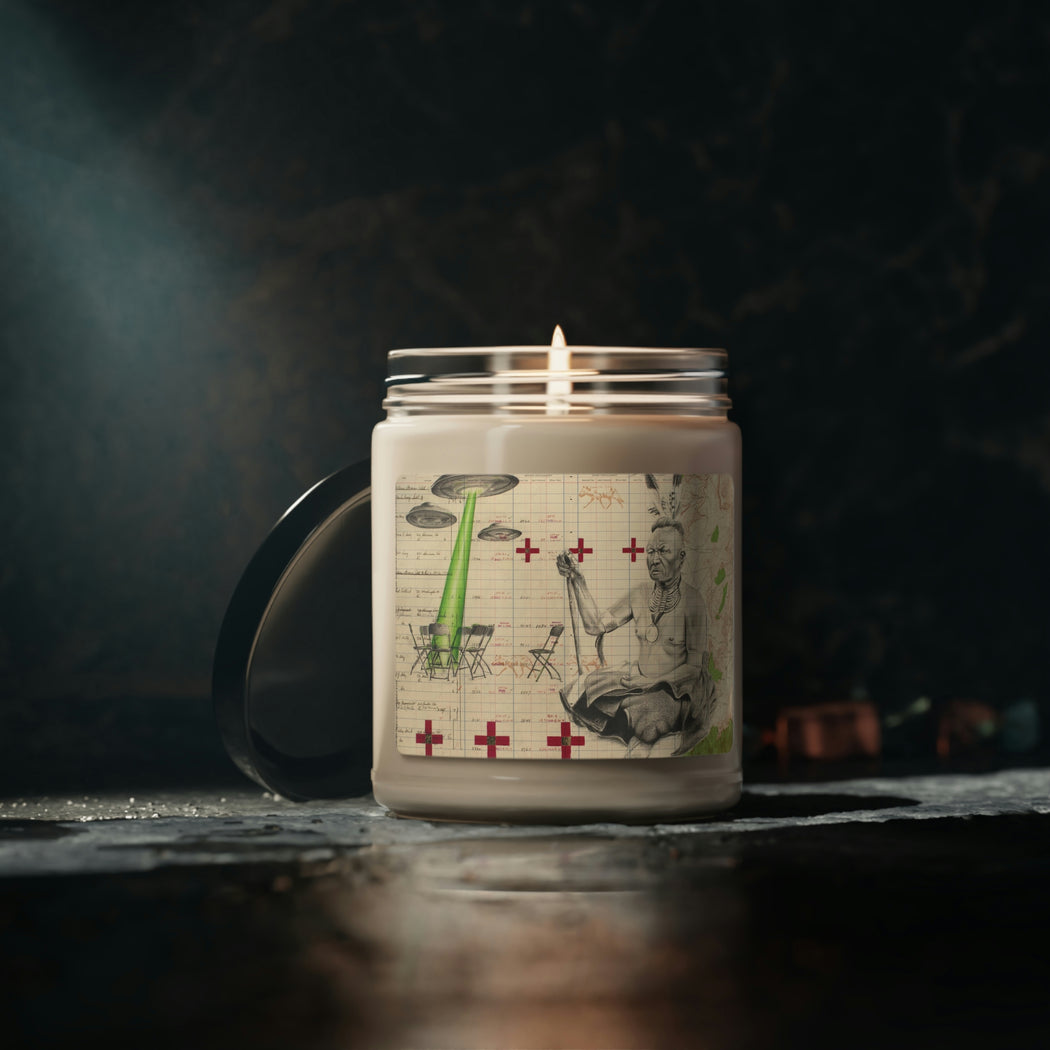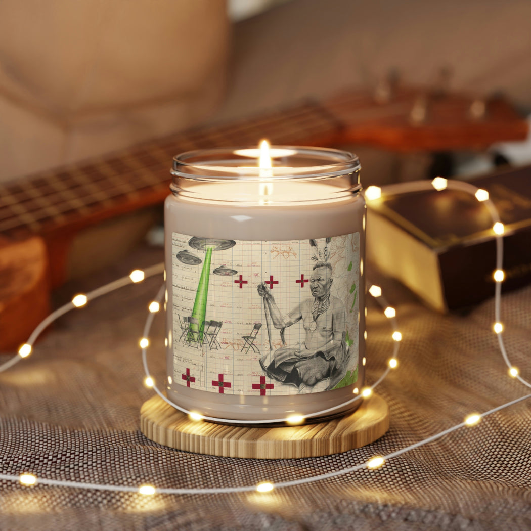 Packed with immersive aromas, these scented candles are made with 100% natural soy wax blend. Printed with Chris Pappan's See Haw Directs An Alien Invasion From The South.