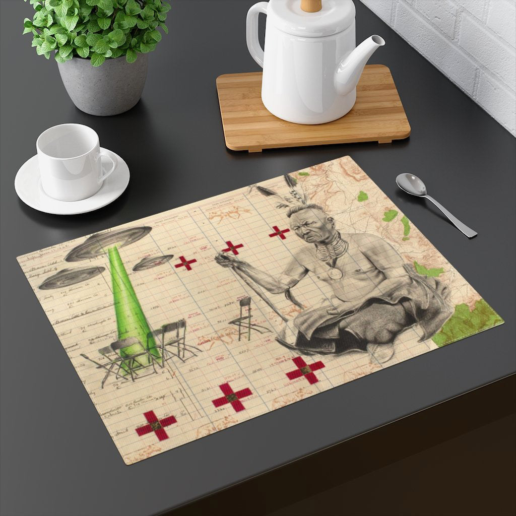 Make your dining space unique and stylish with Chris Pappan's See Haw Directs An Alien Invasion From The South.
