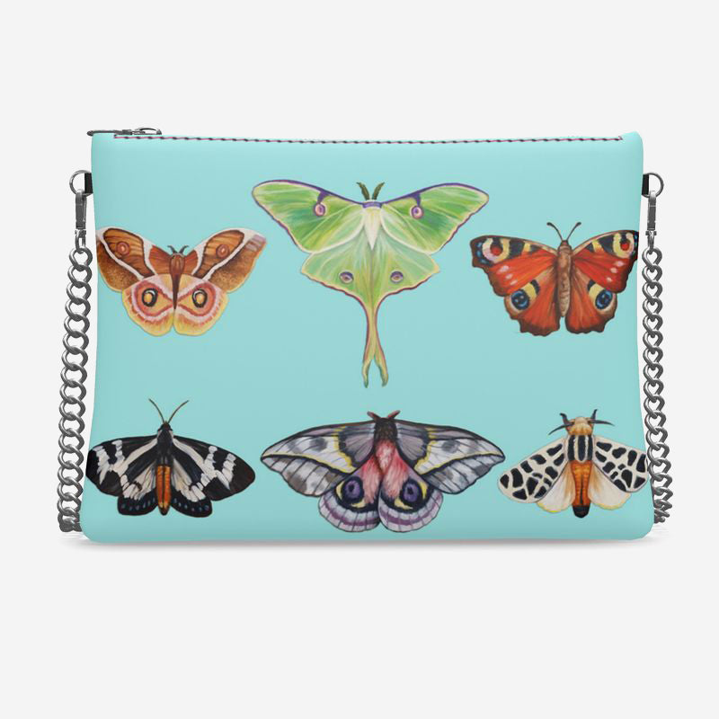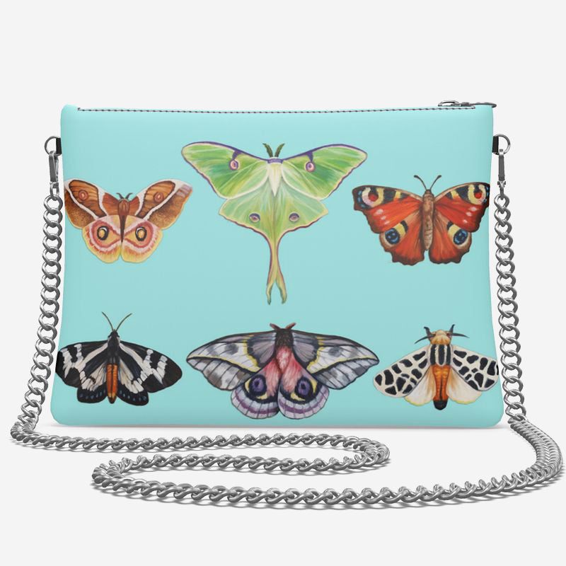 This beautiful designer crossbody bag is imprinted with Andrea Peterson's Silver Chrysalis