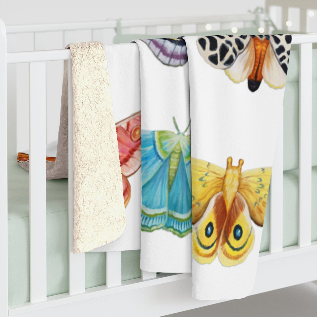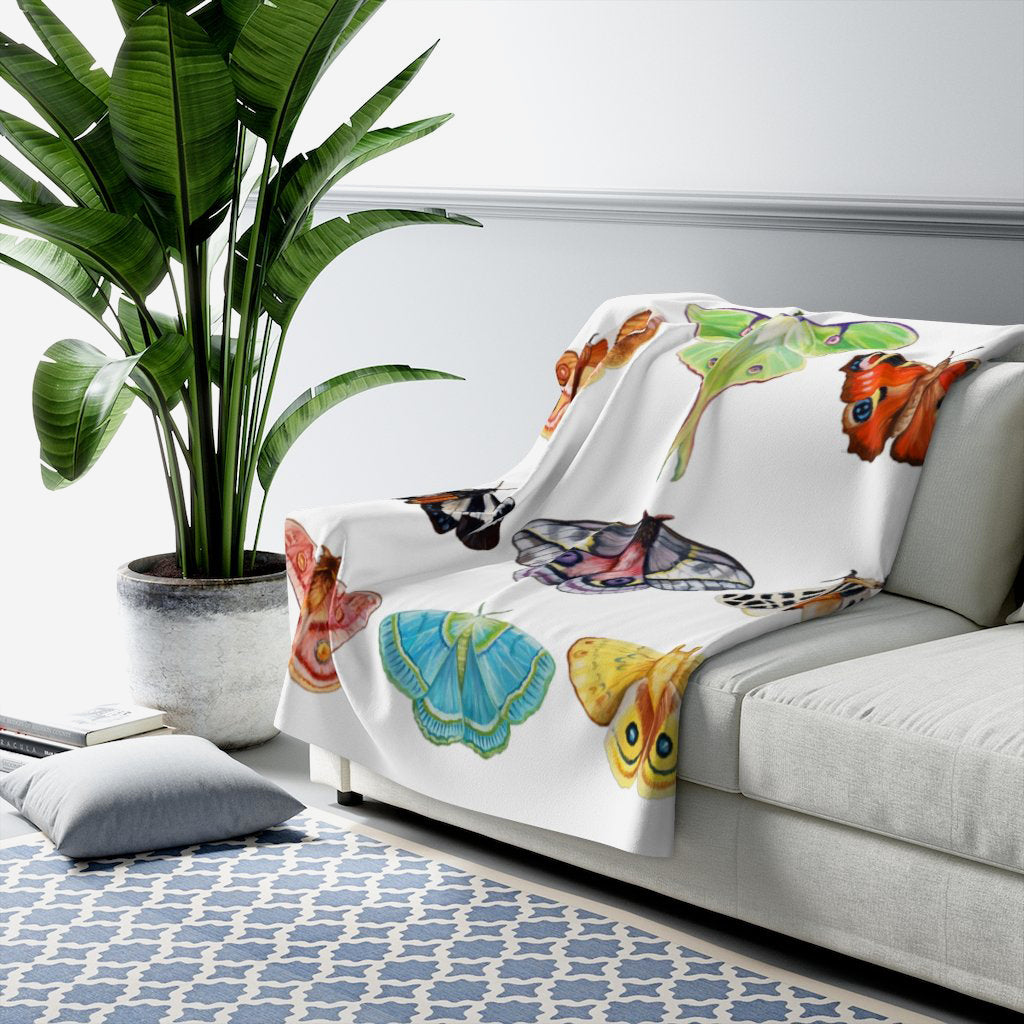 Unbelievably fluffy and warm, this blanket is imprinted with Andrea Peterson's Silver Chrysalis. It's the perfect size for snuggling on the couch, by the fireplace or at outdoor events.