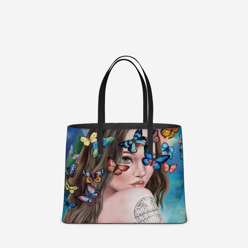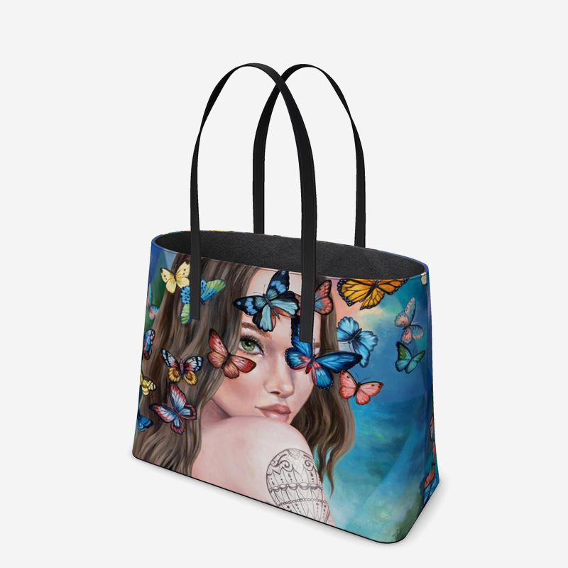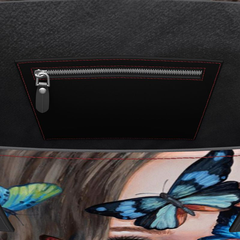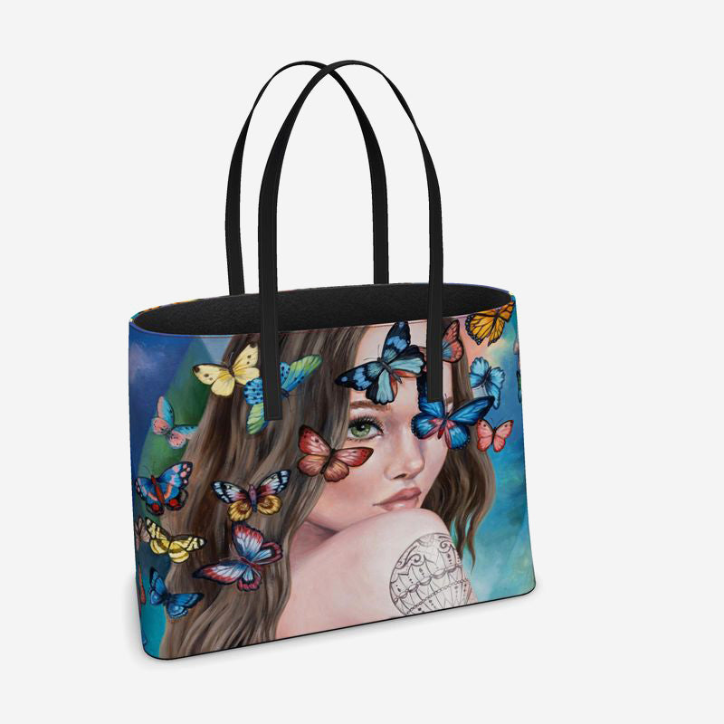 This stunning, custom leather tote is imprinted with Andrea Peterson's Silver Linings.