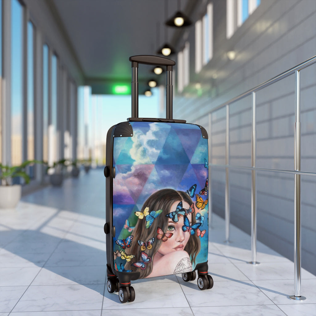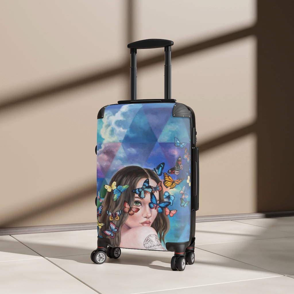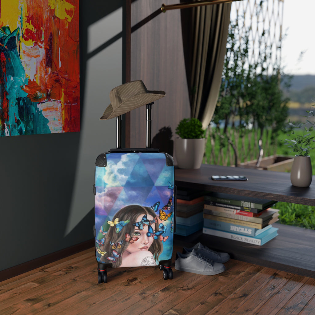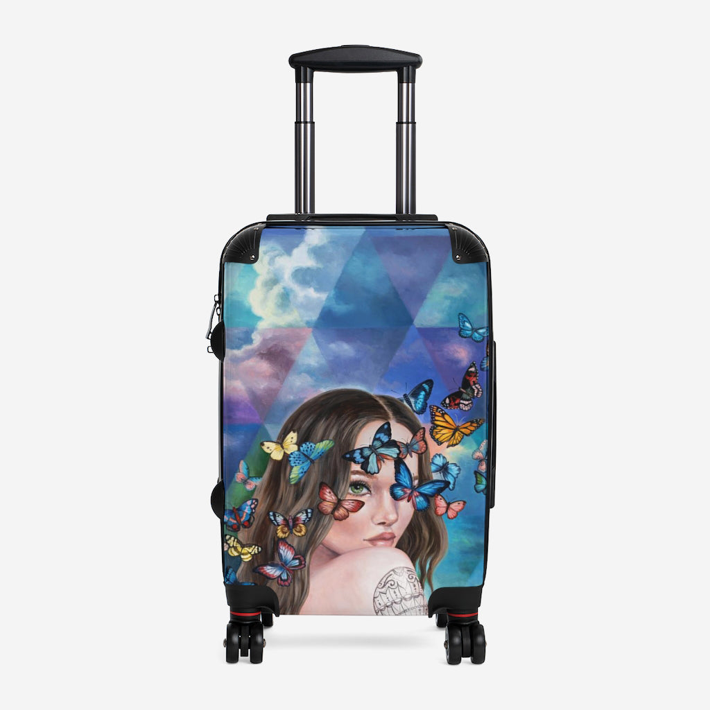 Make a bold statement with this wheeled carry on imprinted with Andrea Peterson’s Silver Linings.