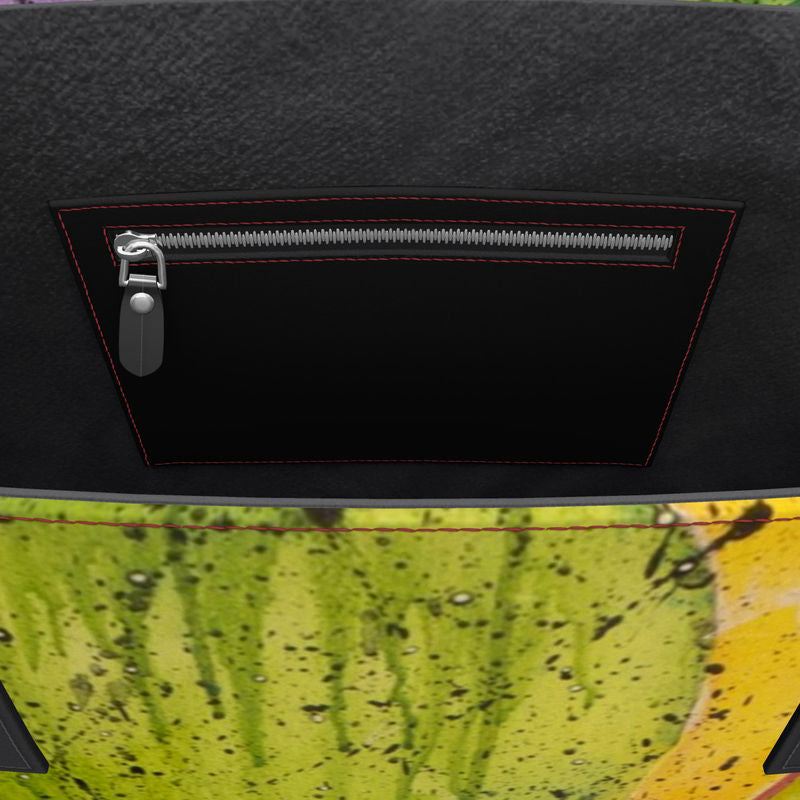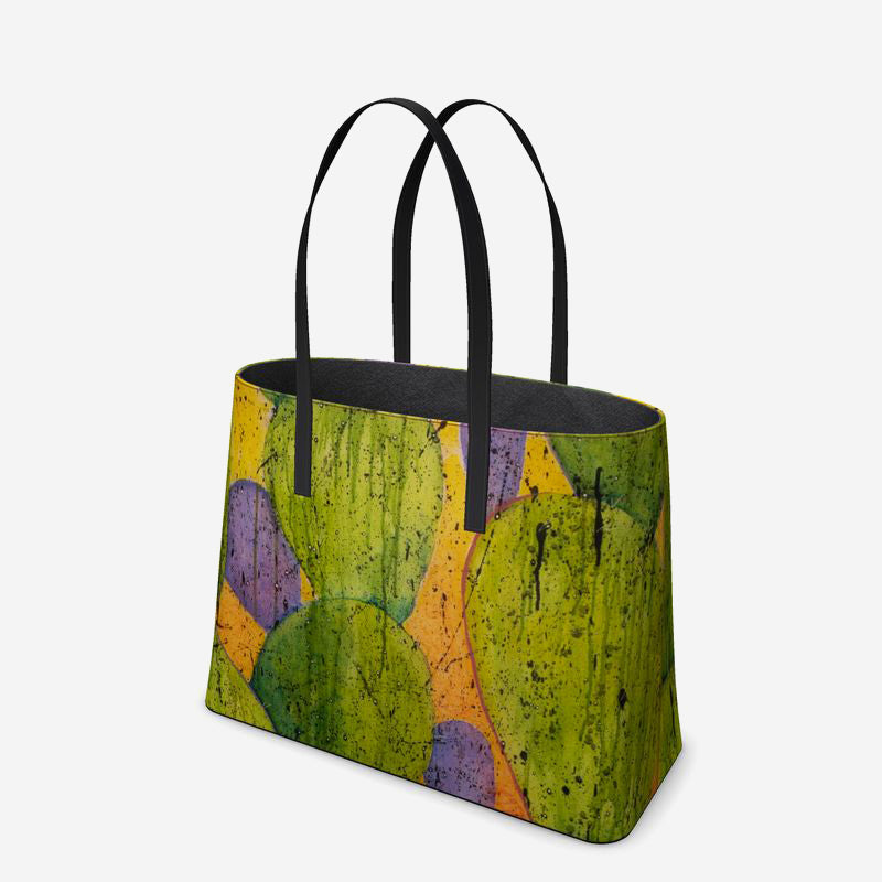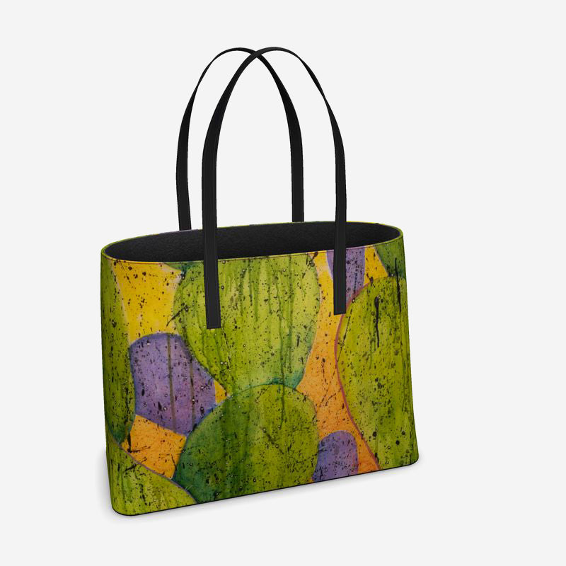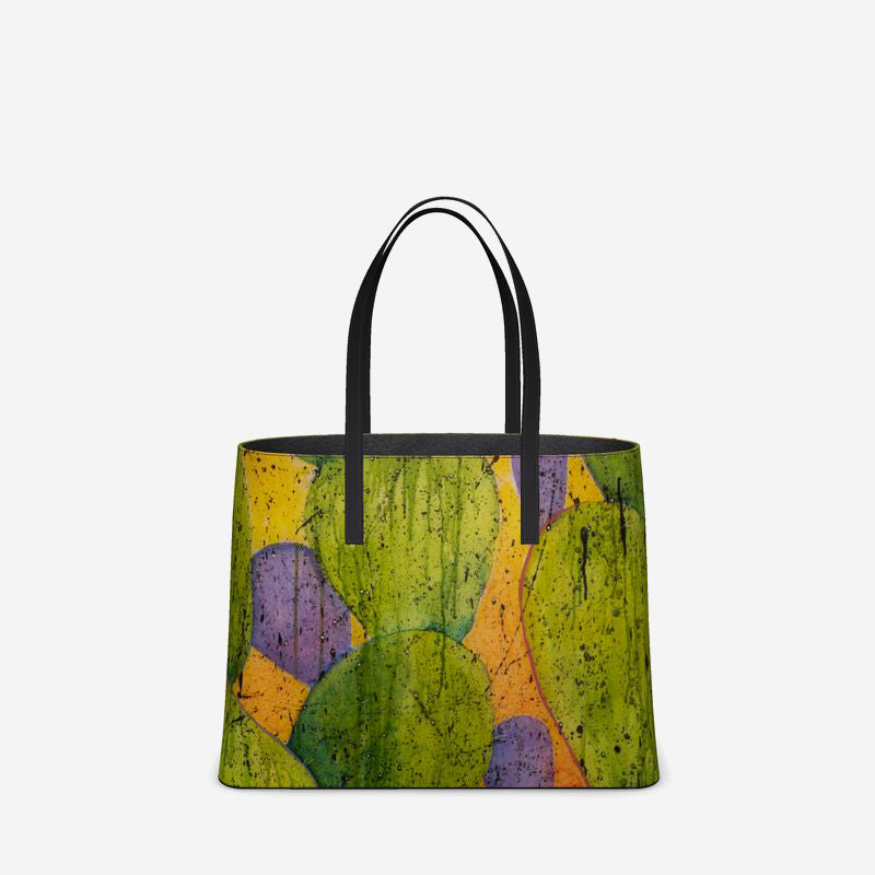 This stunning, custom leather tote is imprinted with Helen K. Tindel's Spikes and Splatters.