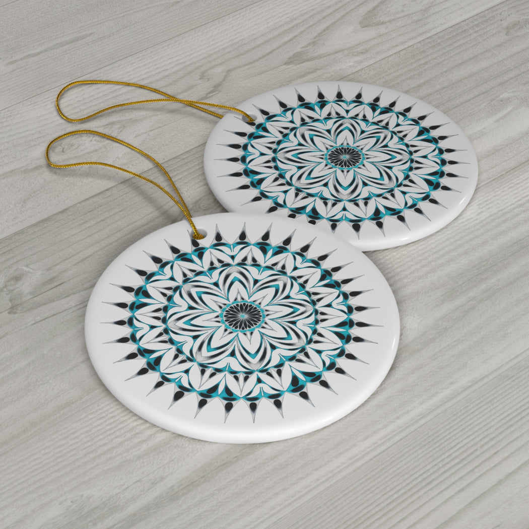This custom-made ceramic ornament can be the perfect heirloom to use year after year, printed with Harlan Reano's Starburst.