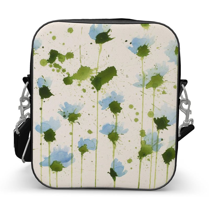 Classic leather messenger bags are imprinted with Helen K. Tindel’s The Subtle Language of Flowers.