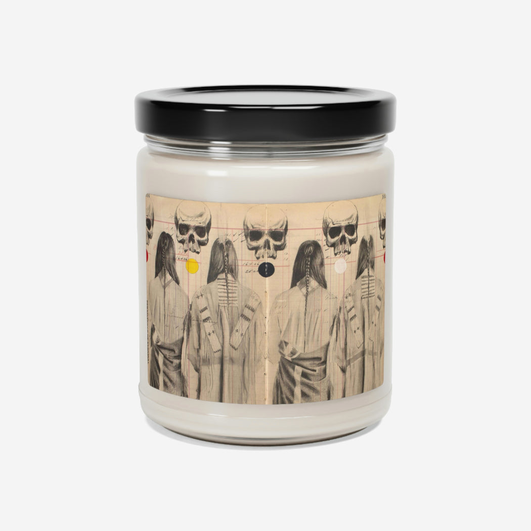 Packed with immersive aromas, these scented candles are made with 100% natural soy wax blend. Printed with Chris Pappan's Survival.