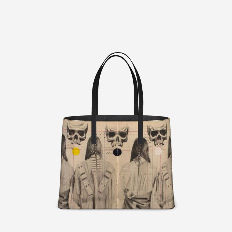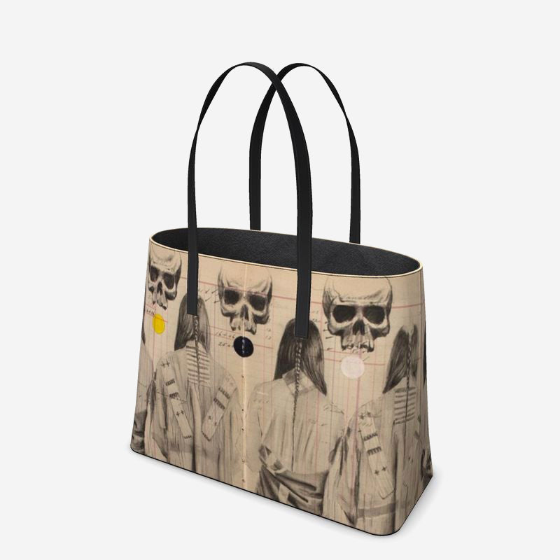 This stunning, custom leather tote is imprinted with Chris Pappan's Survival.