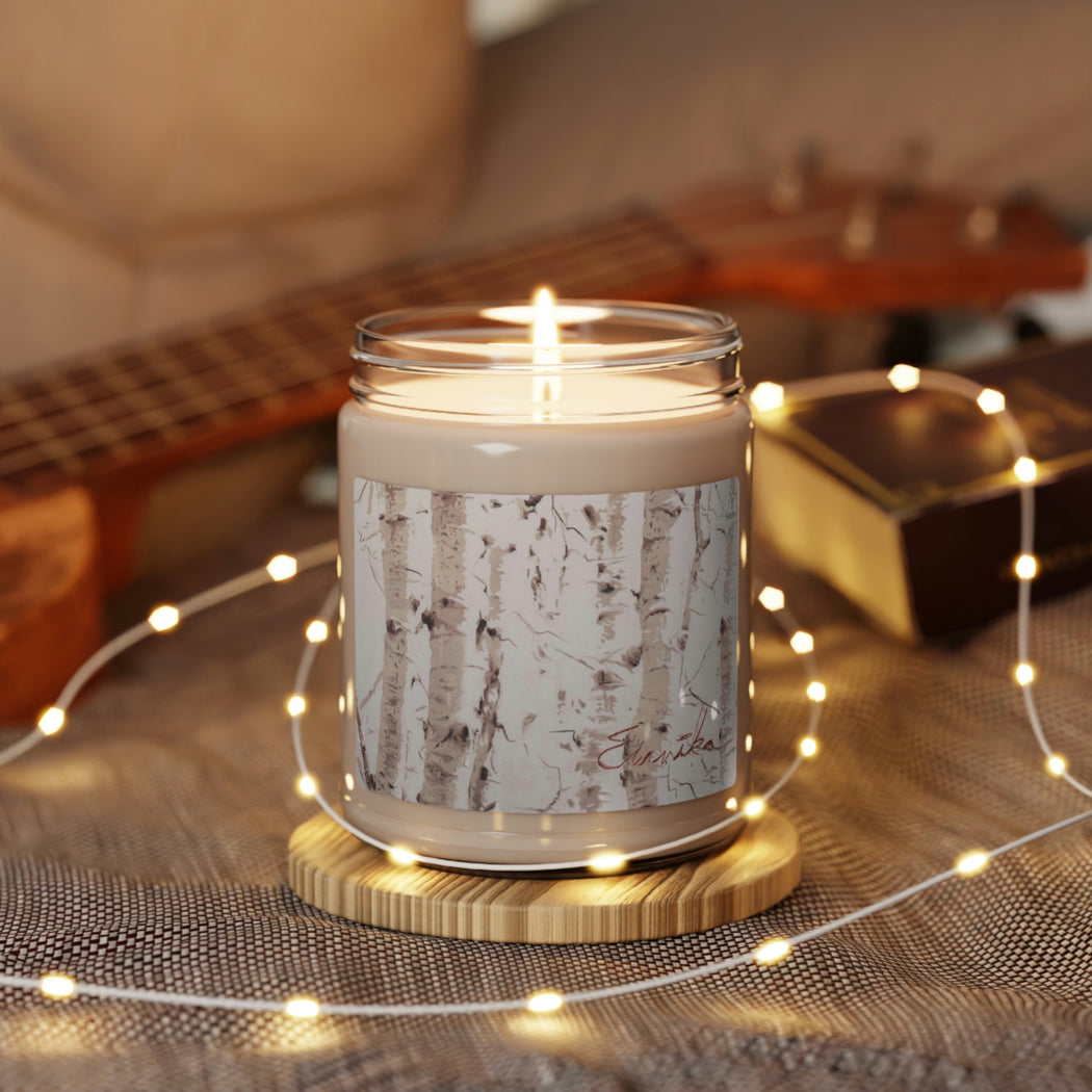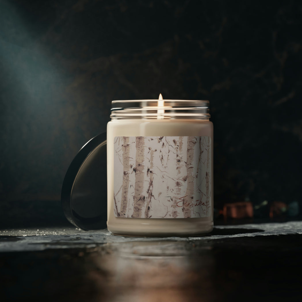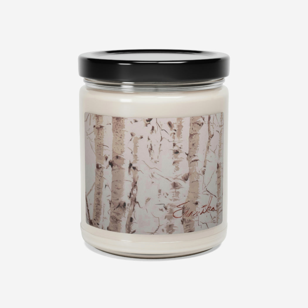 Packed with immersive aromas, these scented candles are made with 100% natural soy wax blend.  Printed with Eunika Roger's There In The Silence.