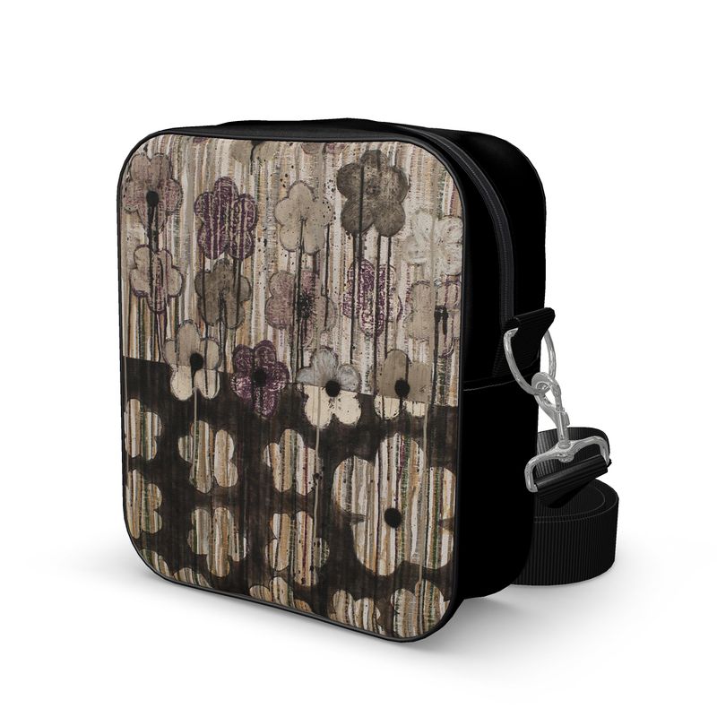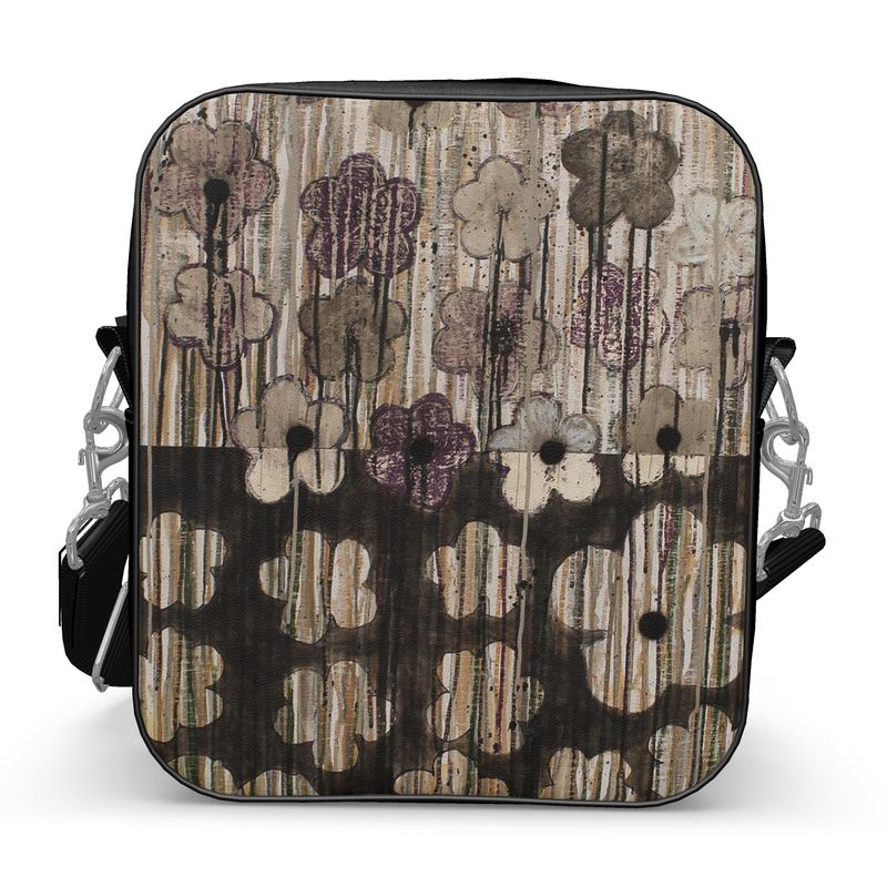 Classic leather messenger bag imprinted with Helen K. Tindel’s Thunder Blooms.