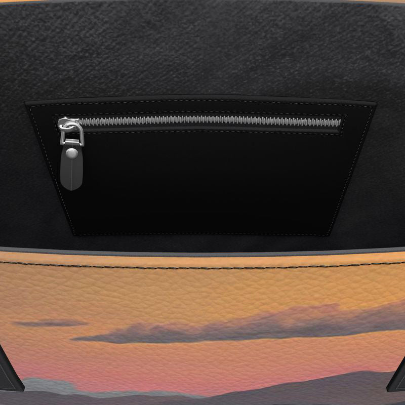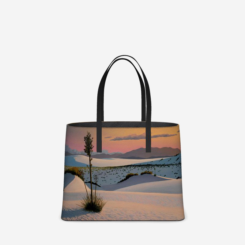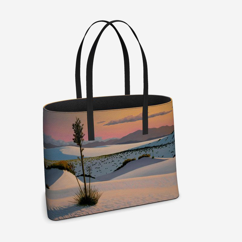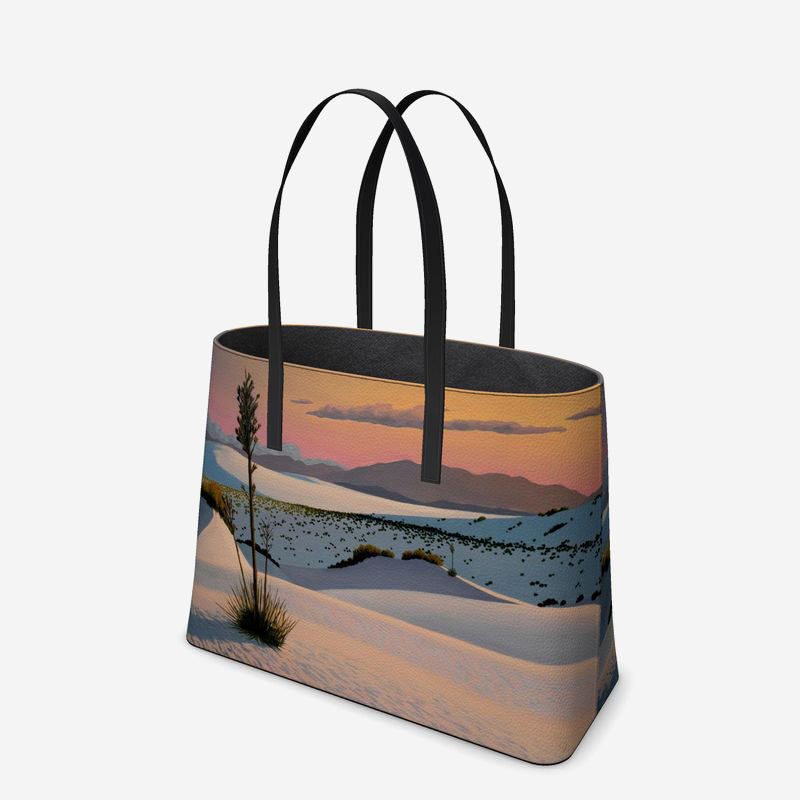 This stunning, custom leather tote is imprinted with Doug West’s White Sands Dawn.