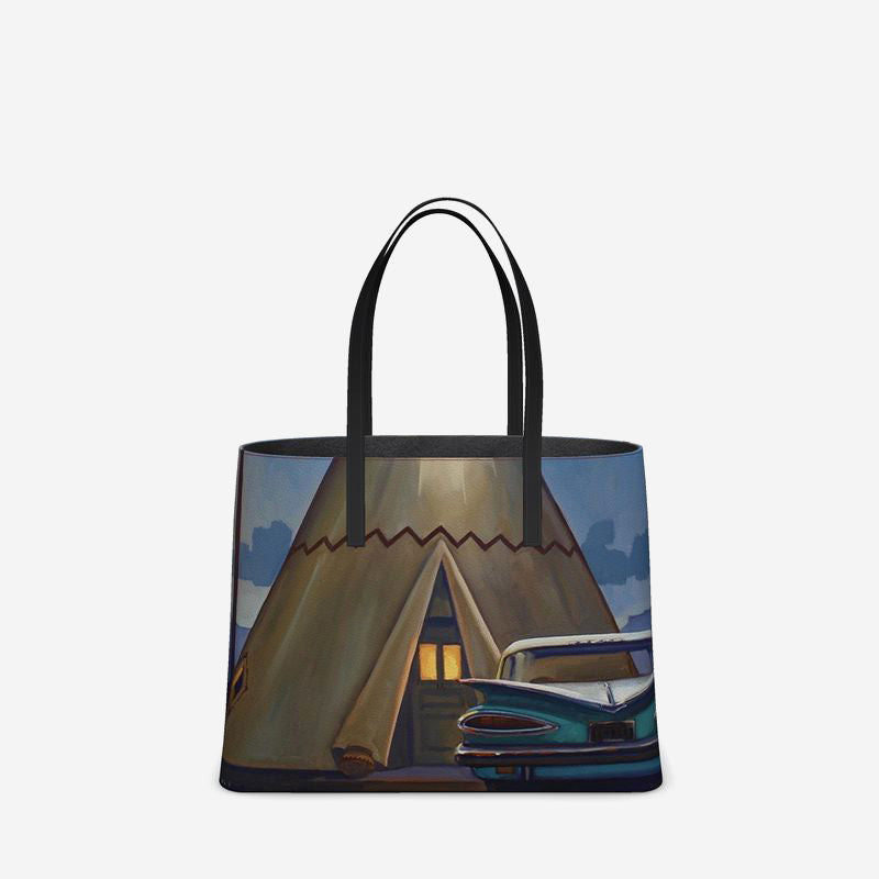 leather tote is imprinted with Dennis Ziemienski’s WigWam Nocturne.