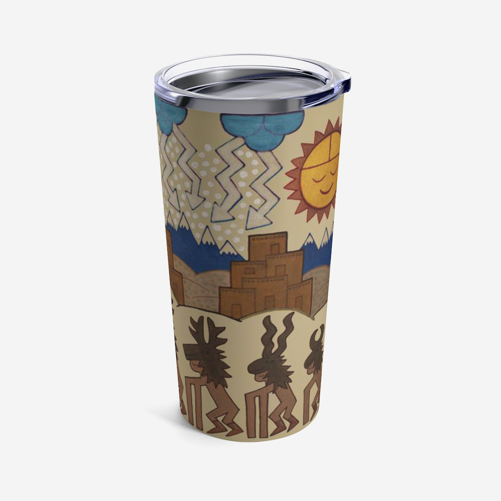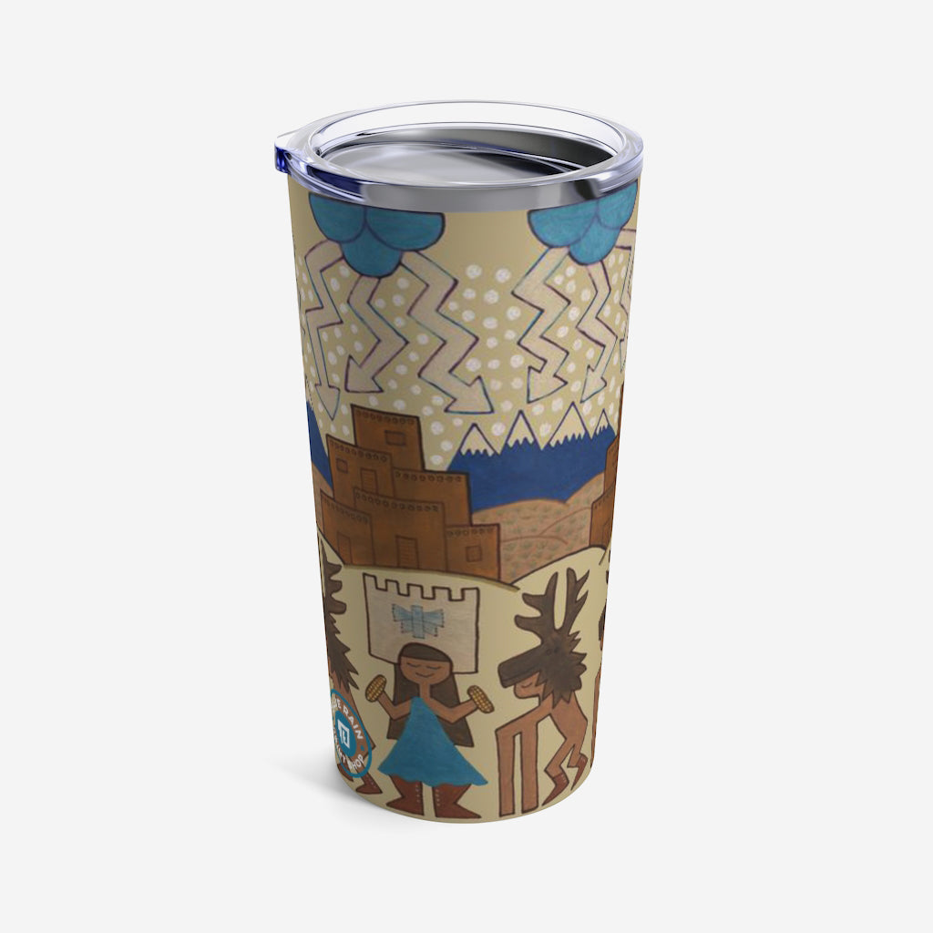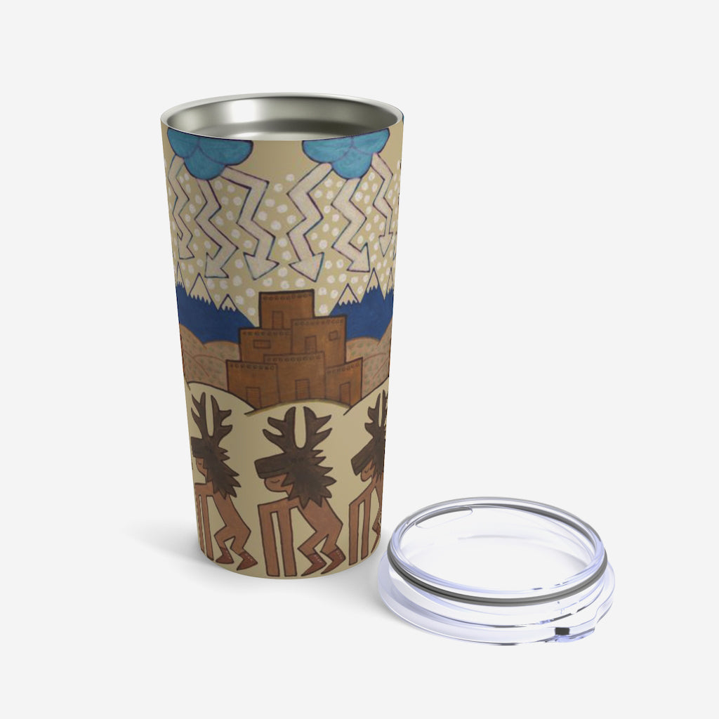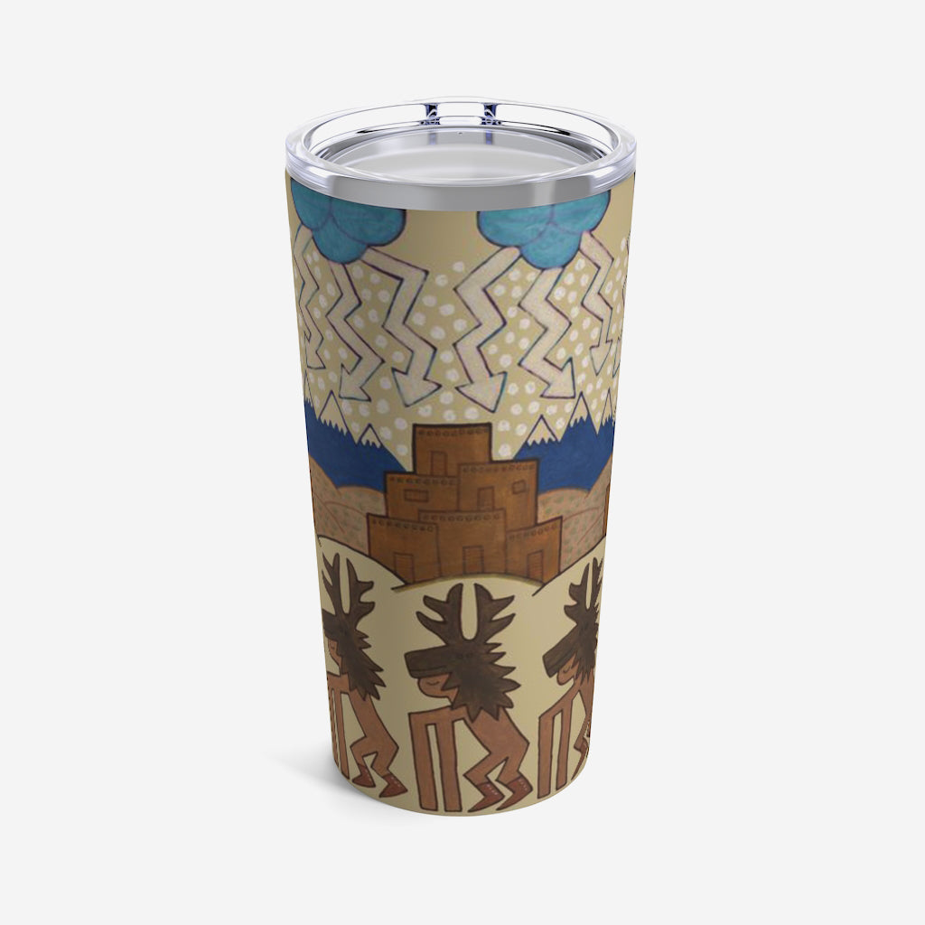 This 20oz tumbler is imprinted with Jody Naranjo's Winter Deer Dance. A stainless travel-size tumbler, it's vacuum-insulated and built to last. It's perfect to express your style.