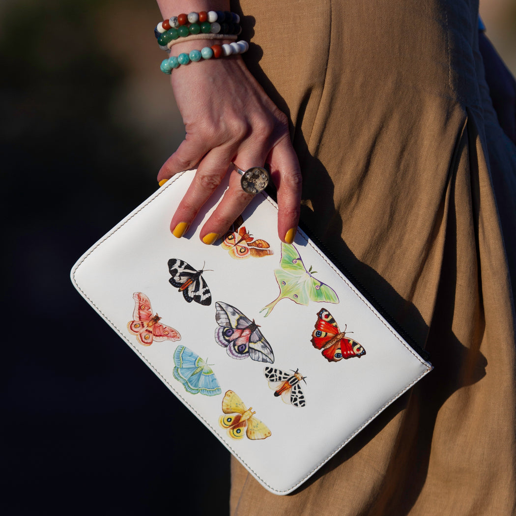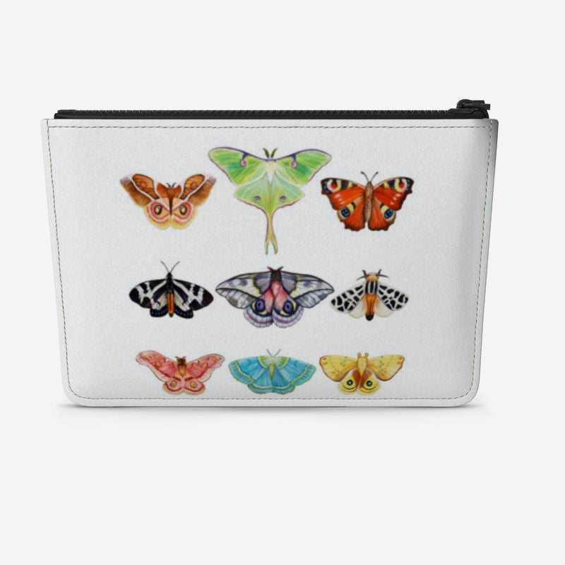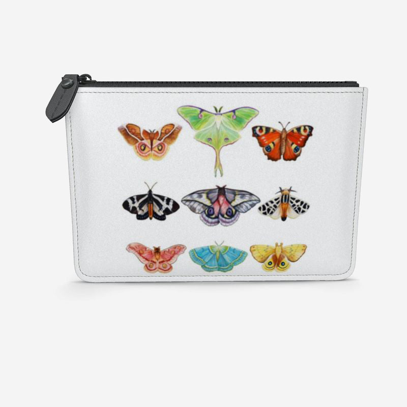 This handy, designer leather clutch is imprinted with with Andrea Peterson's Silver Chrysalis.