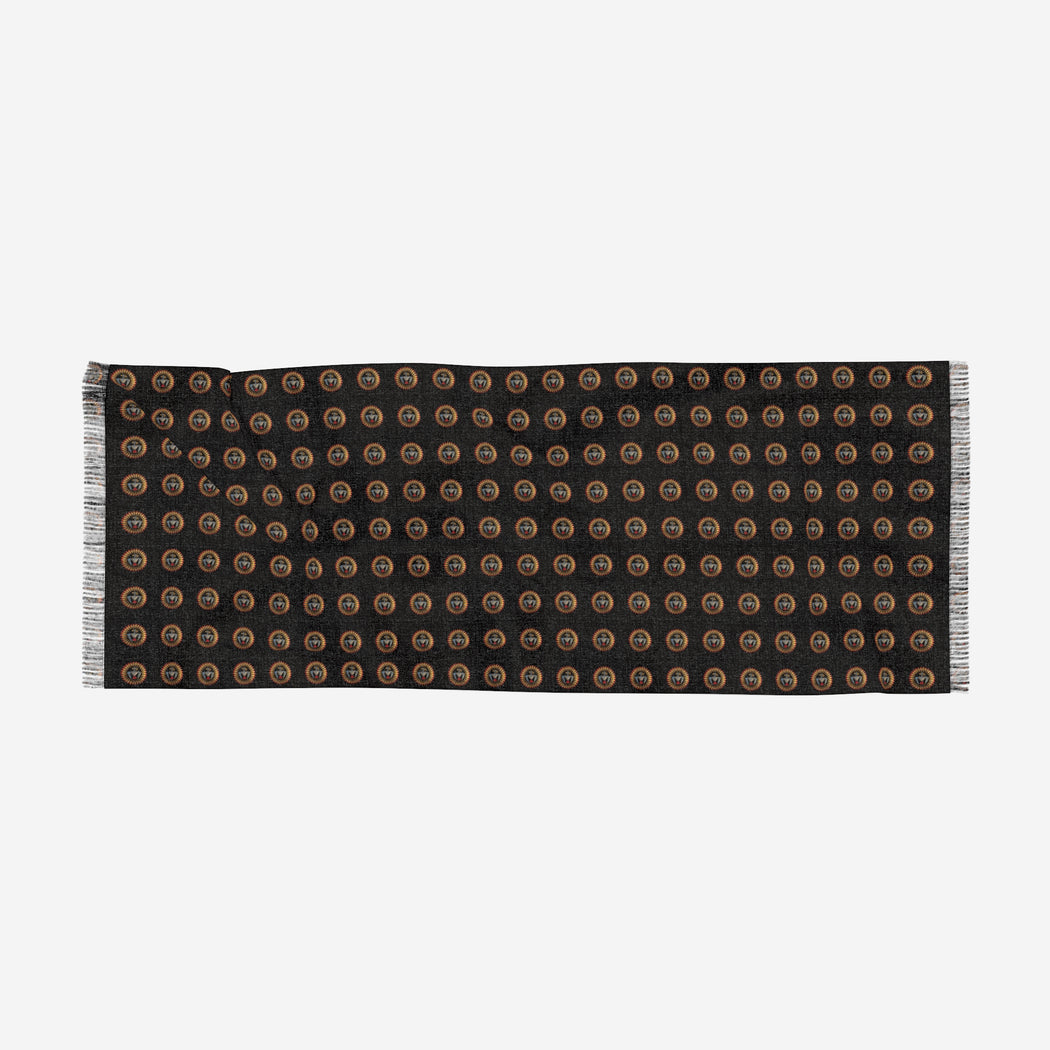Create the perfect accessory that ties together any outfit with these long, lightweight scarves. Each scarf is transparent and printed with Leroy Garcia's Circumspect.
