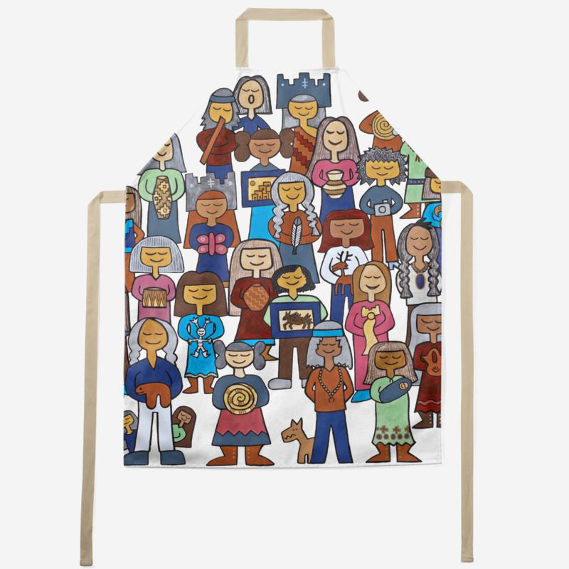 Aprons are handmade and printed with Jody Naranjo’s 100 Indian Markets.