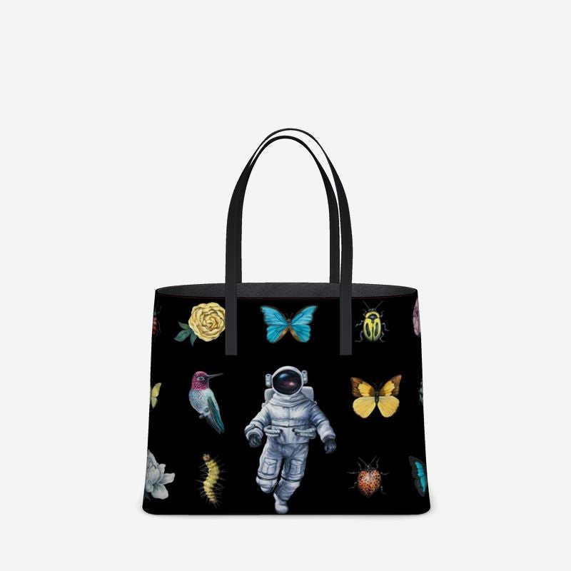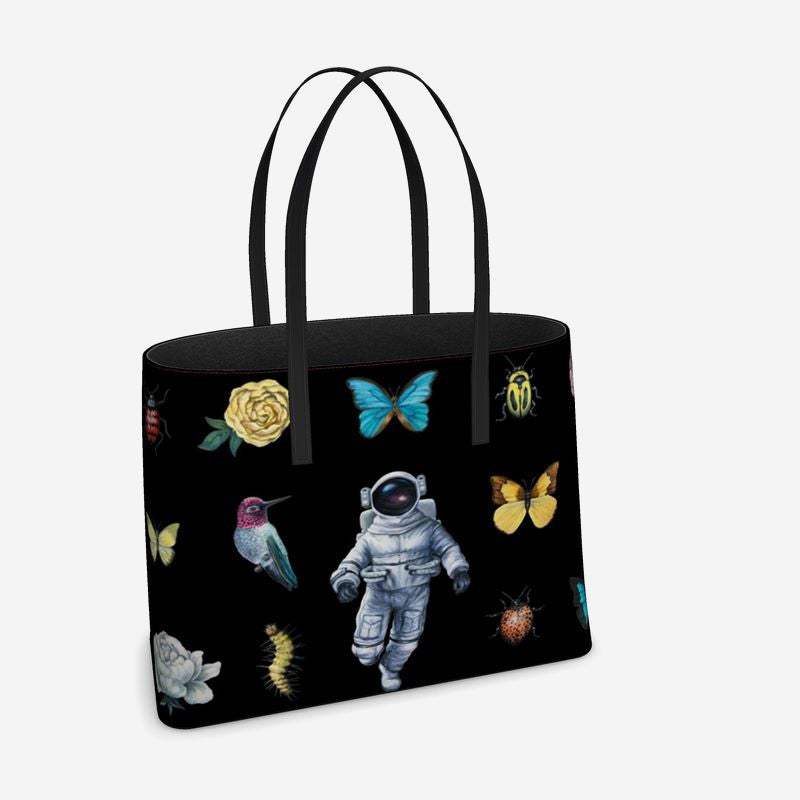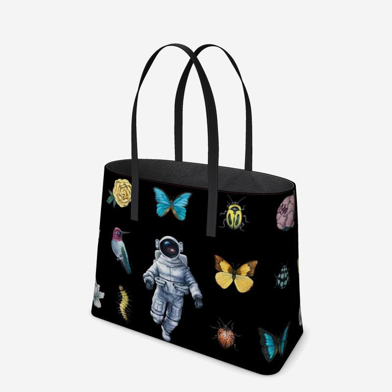 This stunning, custom leather tote is imprinted with Andrea Peterson's Specimen.