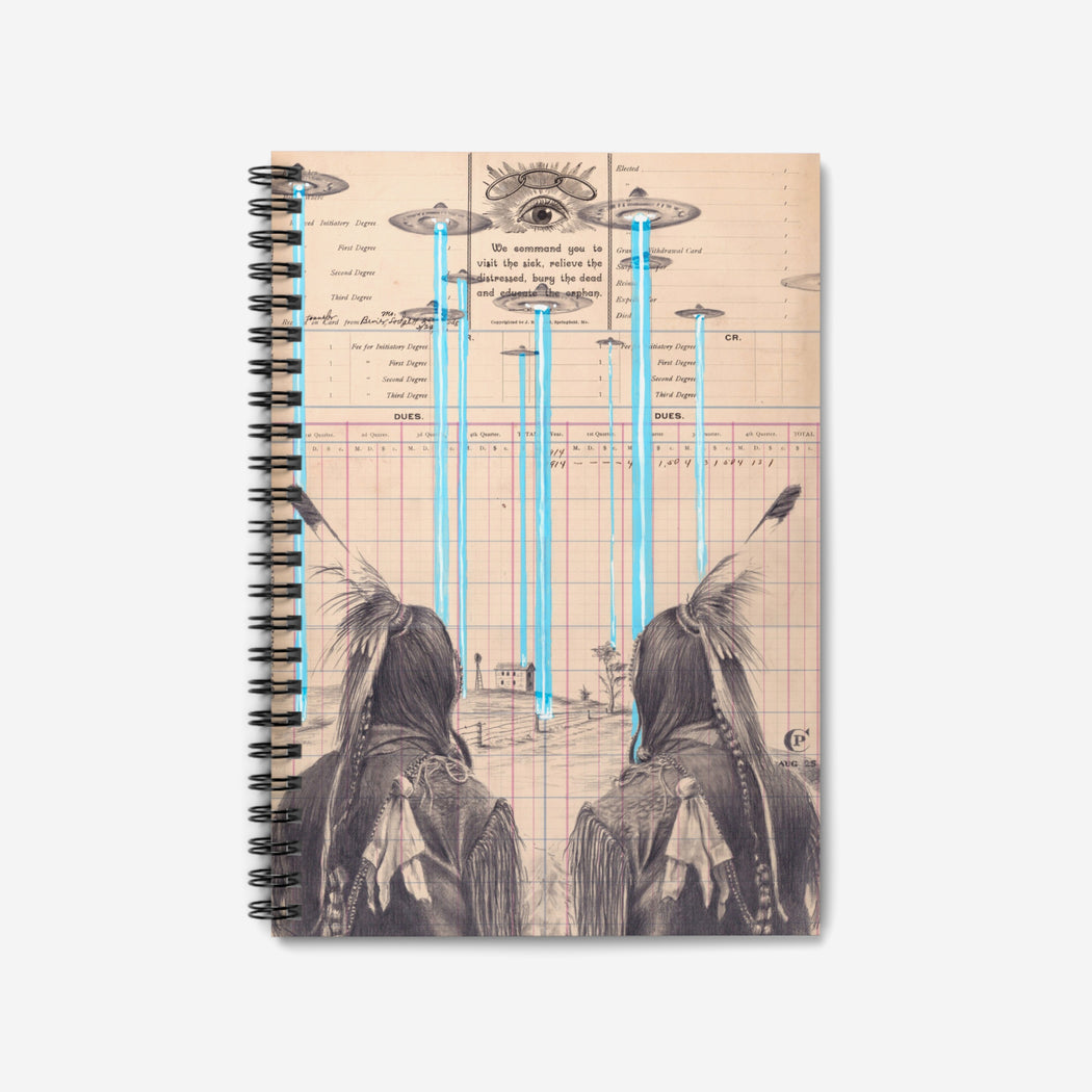 This spiral notebook is imprinted with Chris Pappan's Hero Twins.  Shopping lists, school notes or poems — a perfect companion for everyday life.