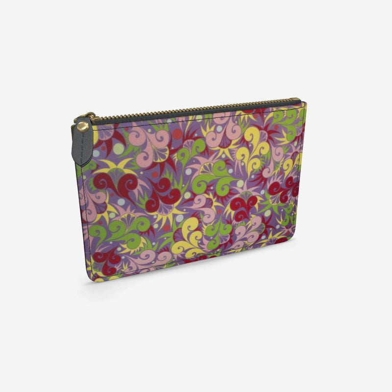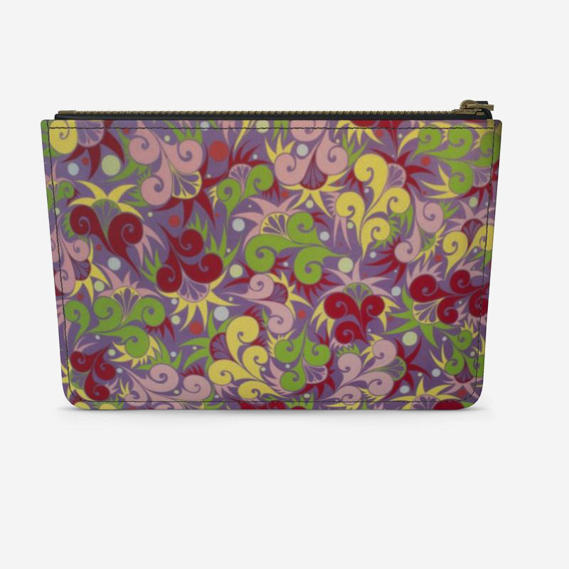 This handy, designer leather clutch is imprinted with imagery by Harlan Reano.