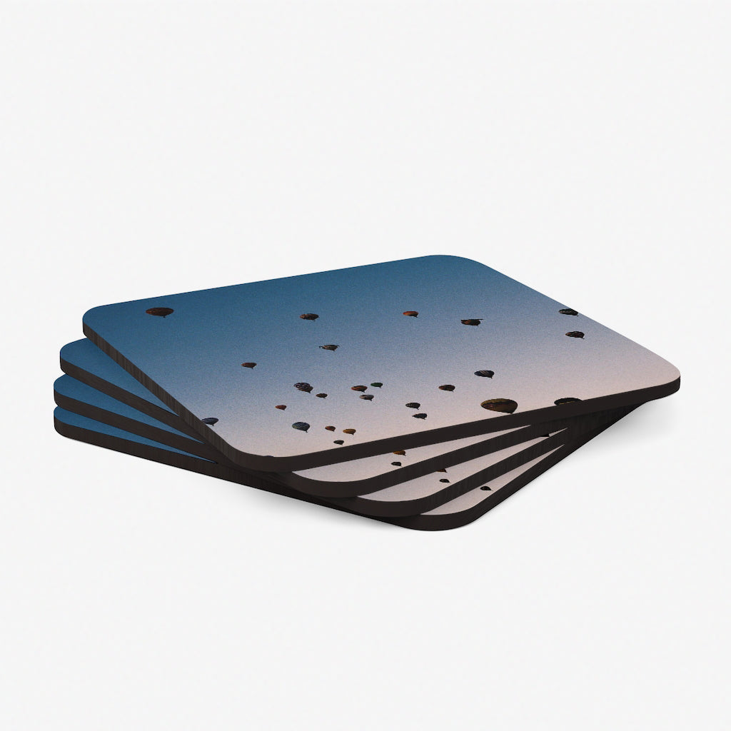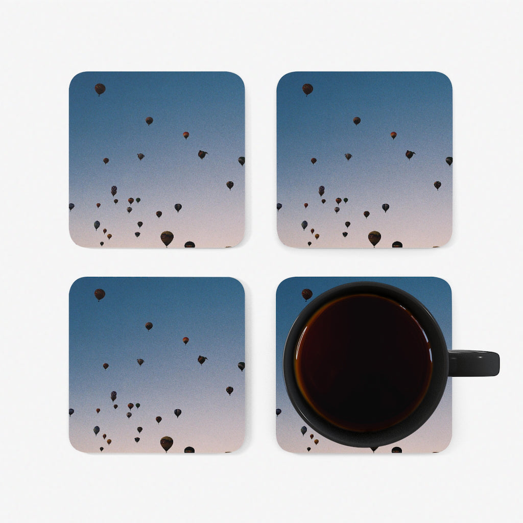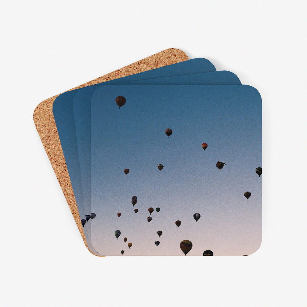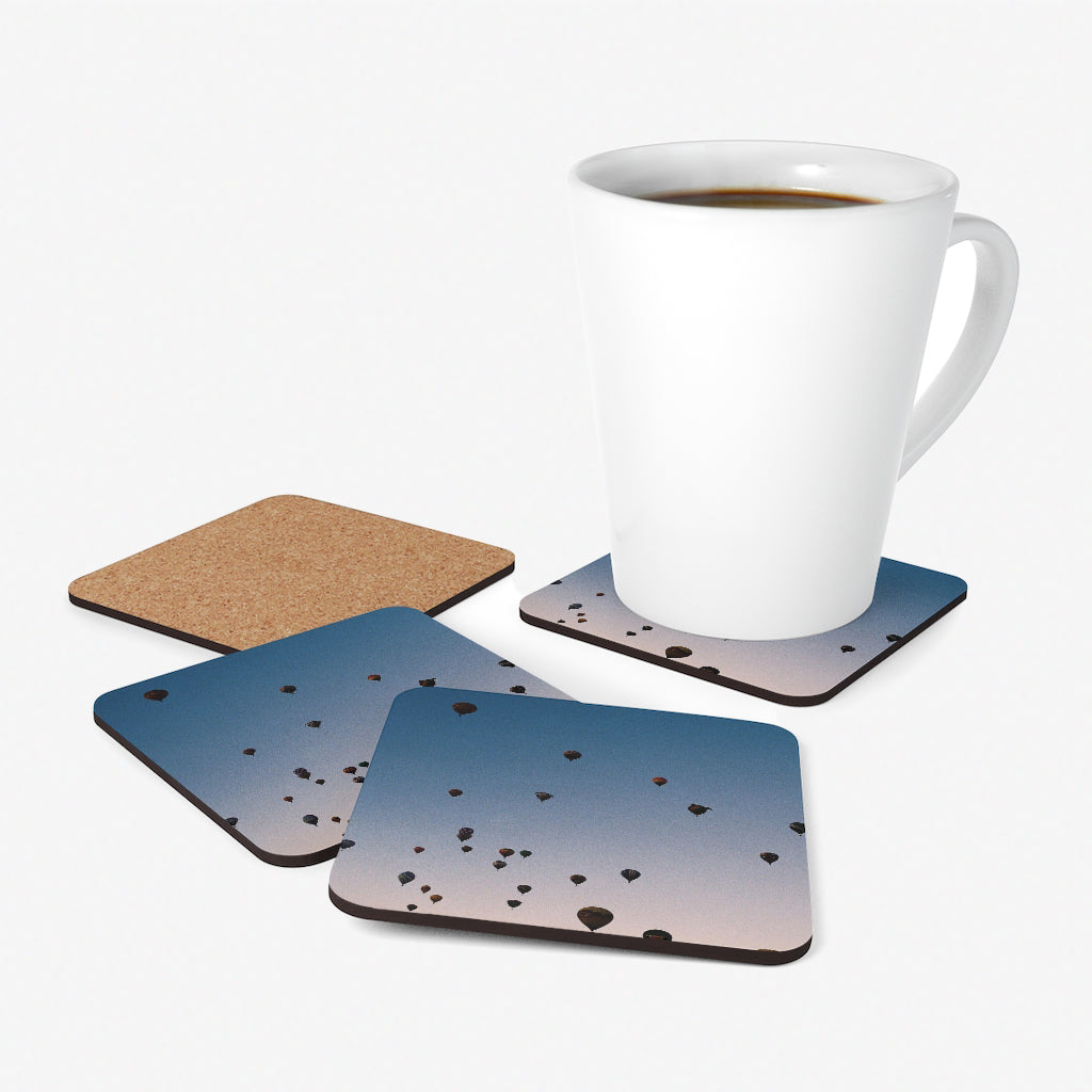 Set of four coasters with a high-gloss top and feature a cork back to prevent sliding.
