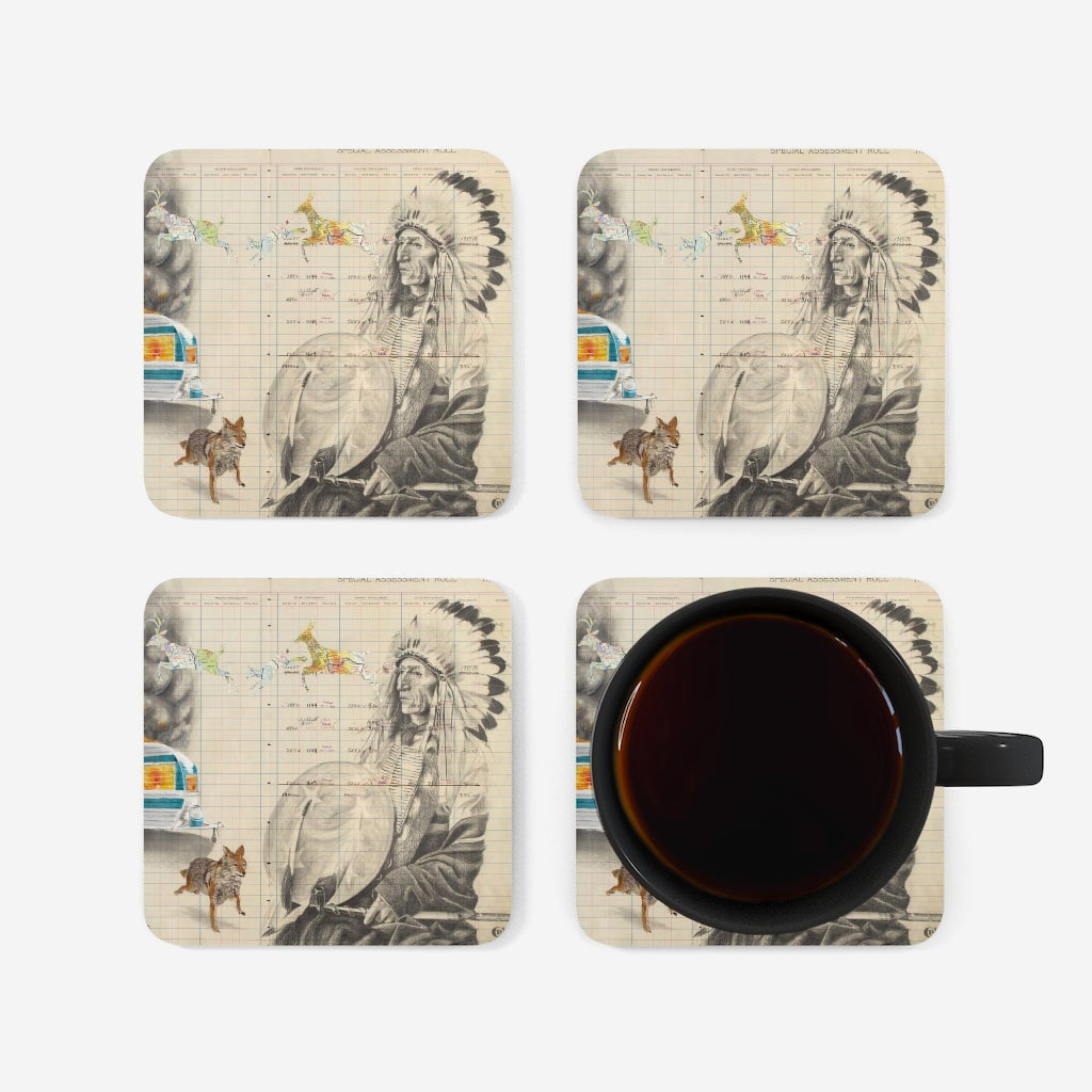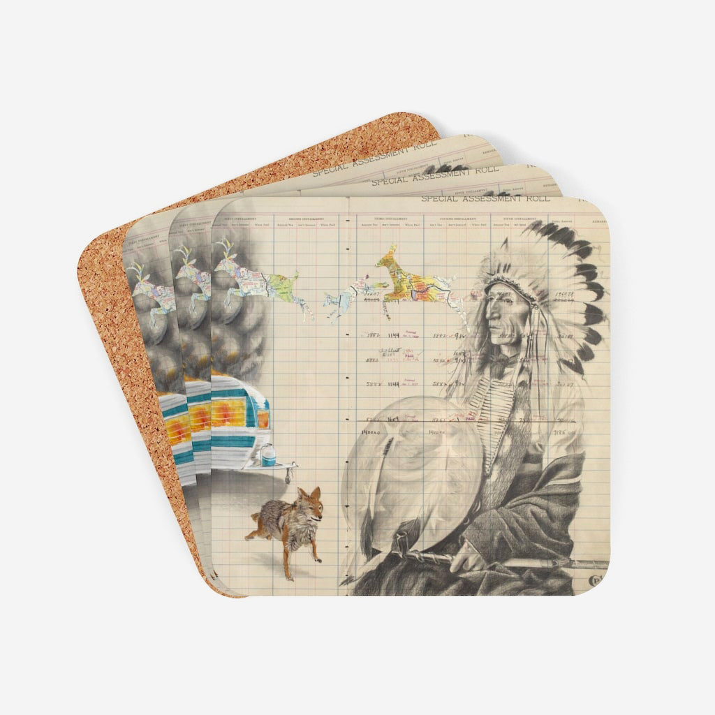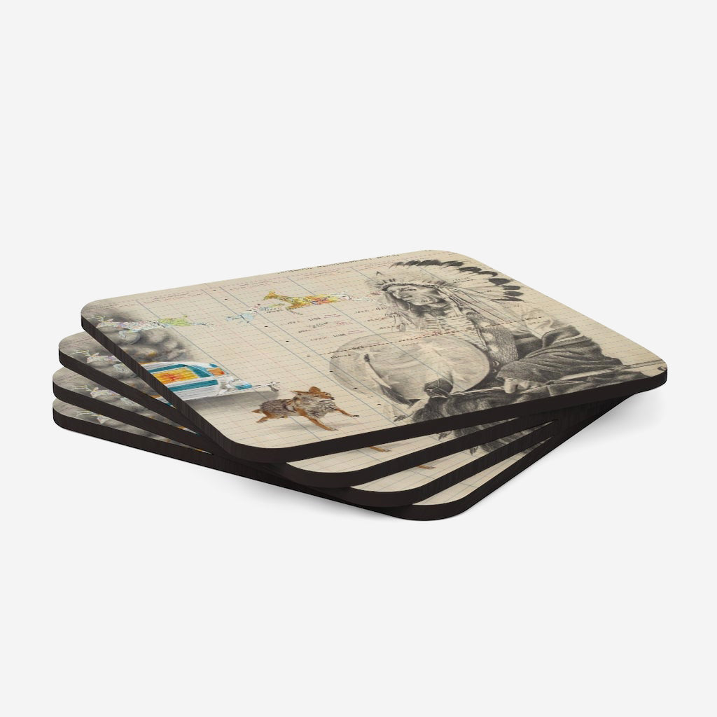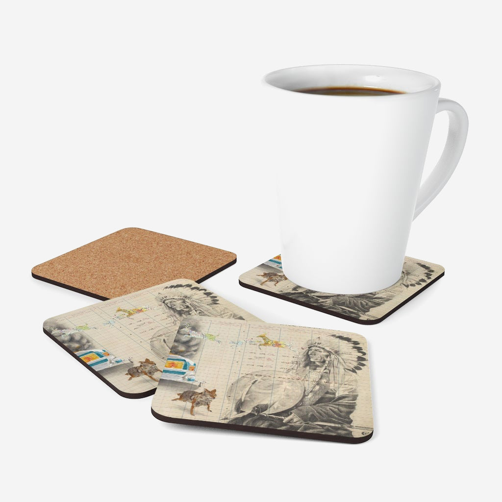 Set of four coasters with a high-gloss top and feature a cork back to prevent sliding.