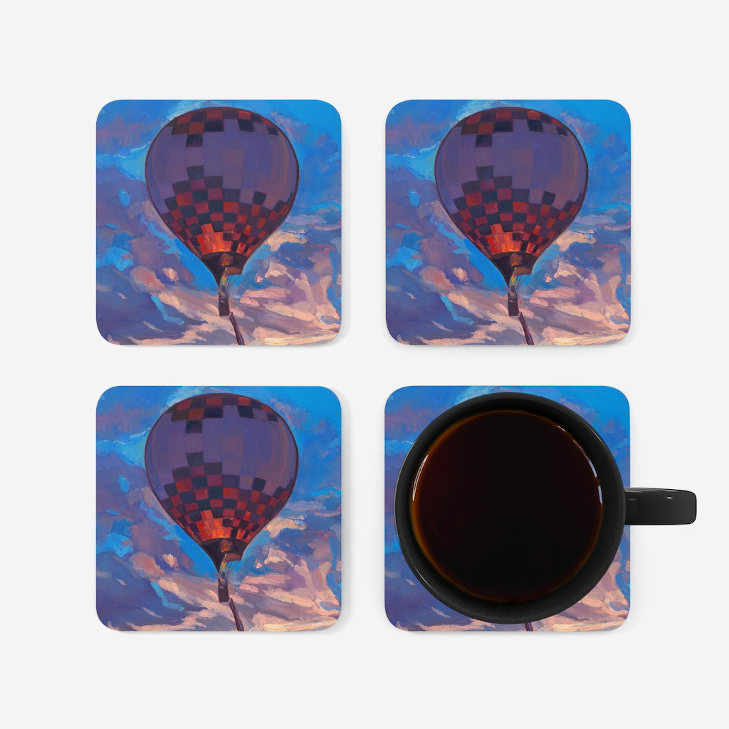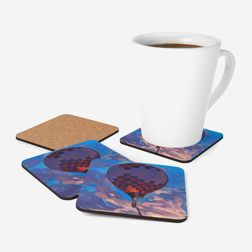Set of four coasters with a high-gloss top and feature a cork back to prevent sliding.
